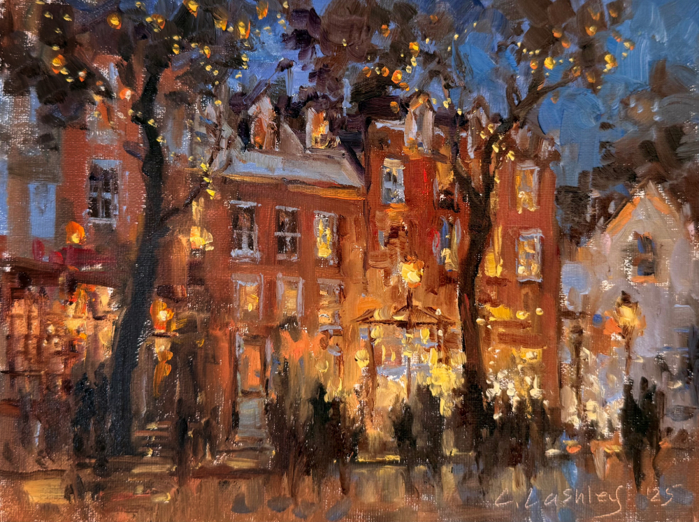 Lashley has been involved in the arts all her life, with early years sketching outdoors and watching her mother and grandmother create sculptures. She spent several years in the high-fashion world of Europe, then worked in graphic design and created murals. She began her professional painting career working in watercolors, but in 2009, she transitioned to oils, seeking new possibilities for expression. Her work has won numerous awards, including Best of Show for both landscape and portrait work. Recent awards include the ARC Salon (Plein Air), Bold Brush Award, Best Landscape at the 27th Oil Painters of America National Show, and Best of Show at Plein Air Texas, Telluride Plein Air, and Bath County Plein Air. Lashley’s work has been featured in numerous art magazines, books, and online media.