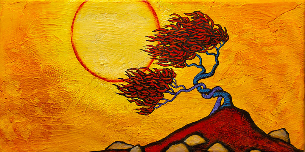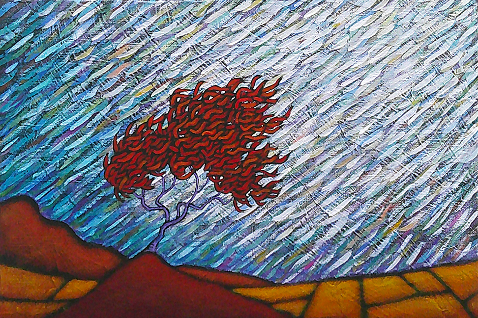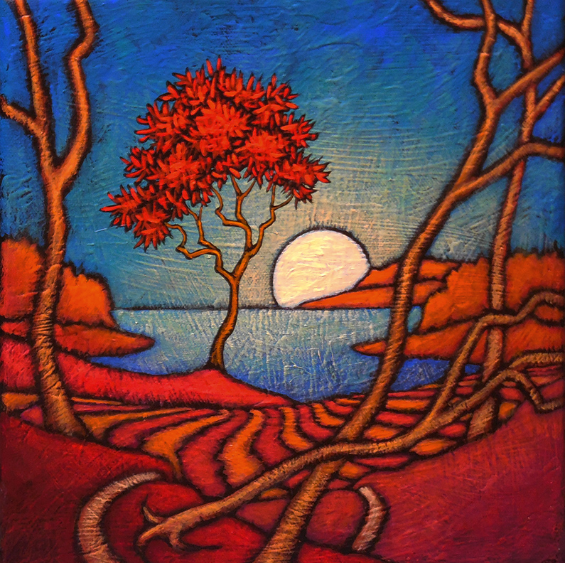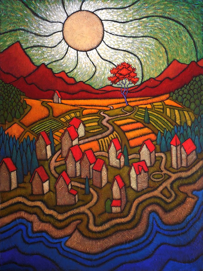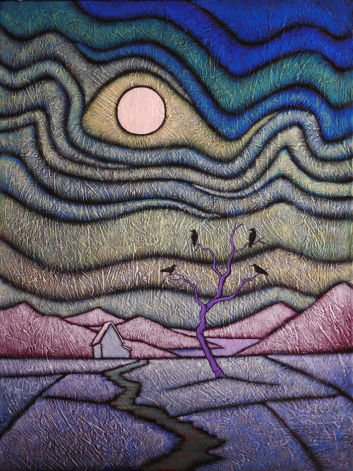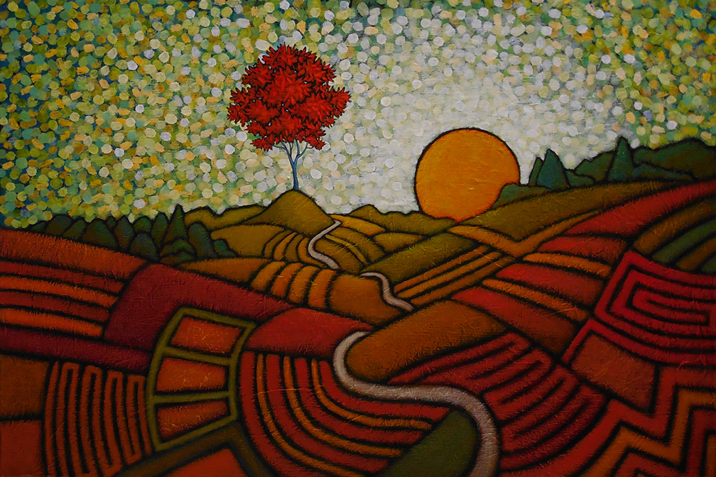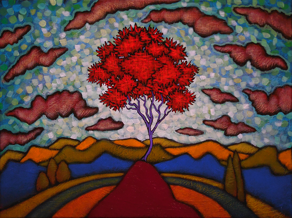 A painter of “internal landscapes,” his work reflects several diverse influences, including Art Nouveau, Eastern philosophy, American Regionalist and Modernist paintings, and Abstract Expressionism. Vividly colorful and filled with evocative lines and textures, these paintings manage to transform the landscape into a subject that is highly emotional and contemplative.