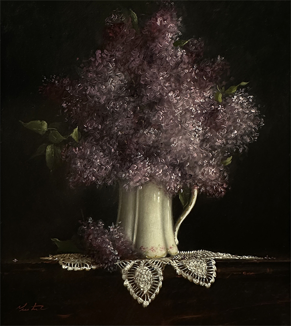 Born in Worcester, Massachusetts, in 1951, Larry Preston spent his teenage years at the Worcester Art Museum, where he frequently viewed the museum’s collection of Flemish still life paintings. He attempted to imitate their techniques and, in doing so, developed the method he uses today to paint his still lifes and landscapes. Completely self-taught, his work evolved over many years.