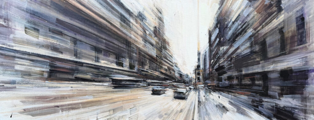 Now based in Philadelphia, he devotes himself fully to his painting. D’Ospina has earned widespread recognition for his bold, expressive depictions of cityscapes and industrial environments. With dynamic brushwork and striking perspective, he captures the raw energy and rhythm of the modern world. His work is held in private collections across the United States and internationally, and he continues to be celebrated by collectors, critics, and art enthusiasts alike.