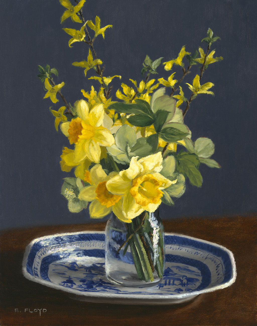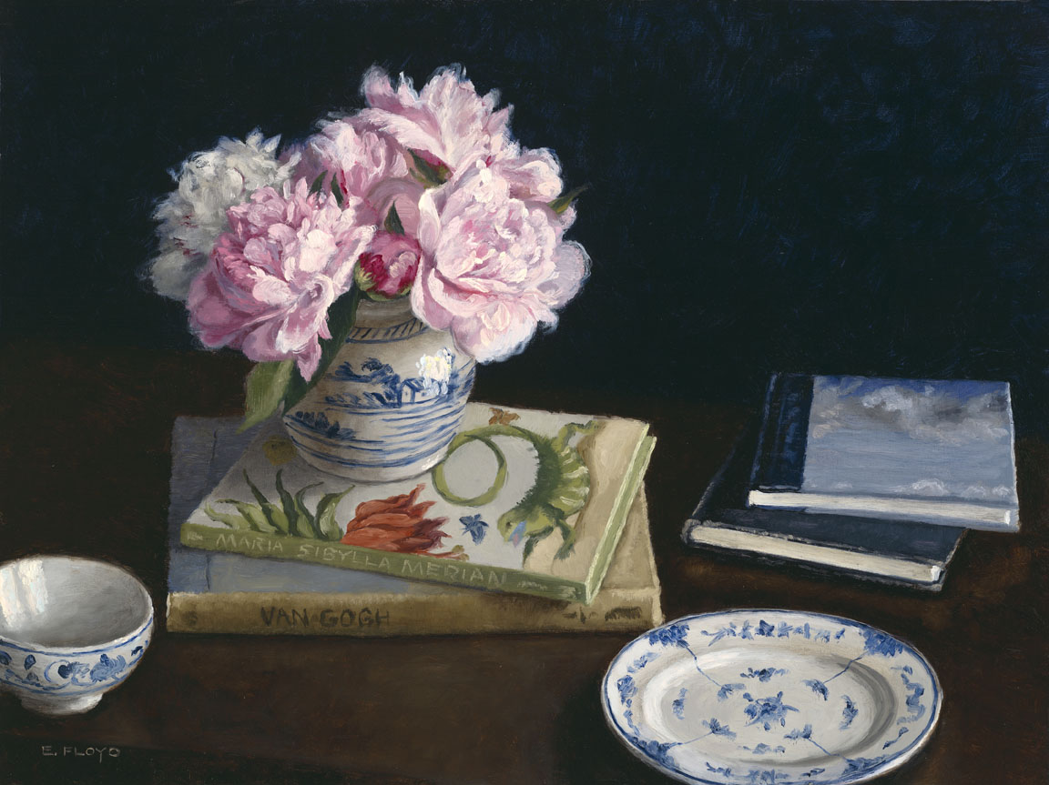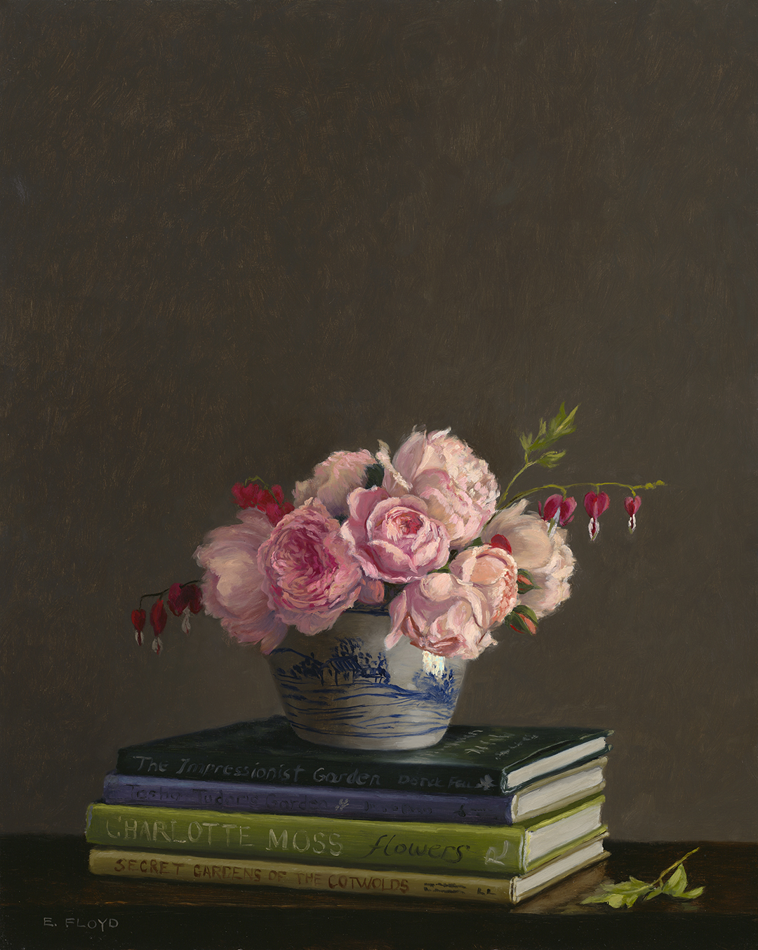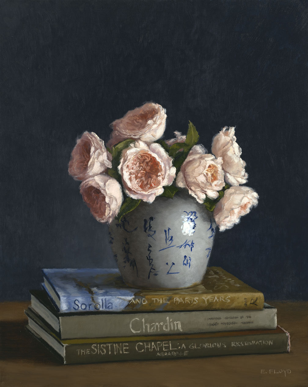Elizabeth loves painting the flowers she grows in her own garden. She works with oils in a colorist manner utilizing a full-color palette. She applies layers of color tints wet-in-wet in order to build up form, value, and color. Her work is highly rendered, but she allows brushwork to exhibit the textural effects that paint application can achieve. When focusing on still life, her studio practice is to work from life in only natural light.