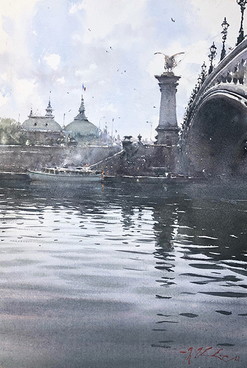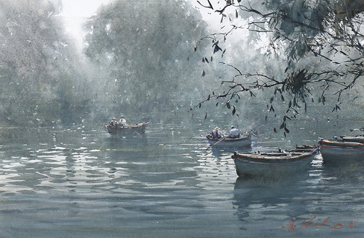 “I try to achieve a balance of harmony between tonal values, design, color and mood that will visually evoke the emotions between the viewer and the painting. Watercolor, with its subtle and gentle effects is a perfect medium to achieve this.” – Joseph Zbukvic