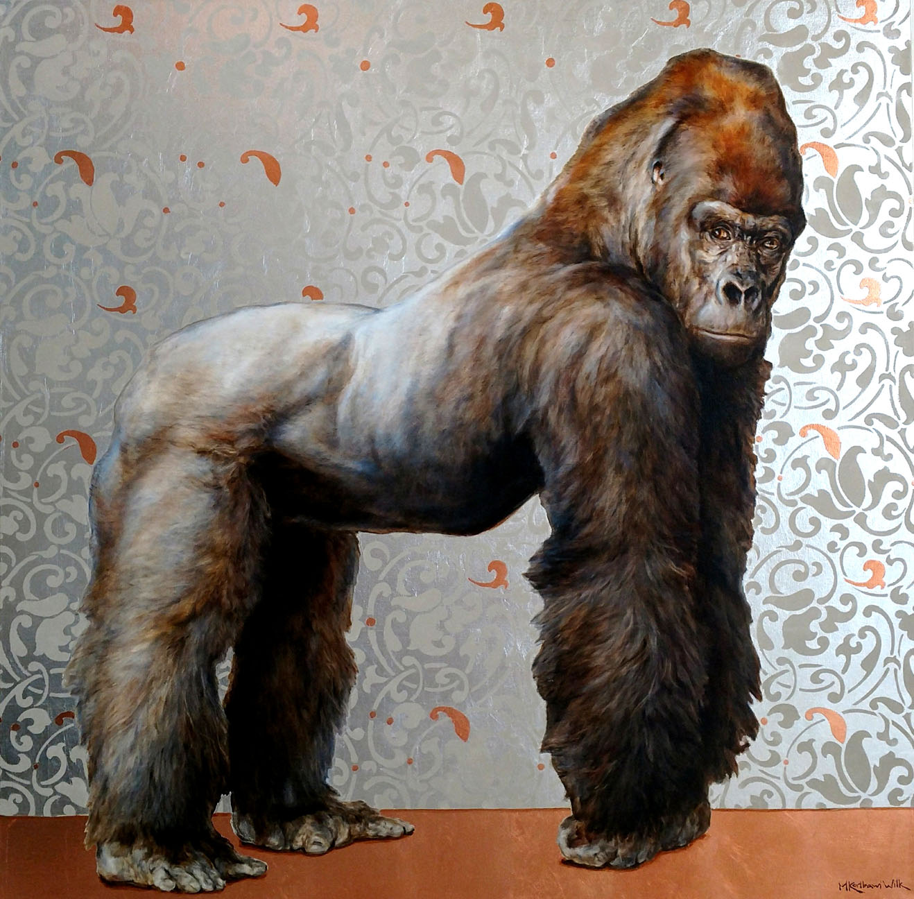 Her practice in painting was informed first and foremost whilst working alongside exotic, native, and domestic animals in the film industry. Wilk continued to paint for pleasure while at the same time attracting the attention of famed Hollywood animal trainers such as Frank Inn (owner and trainer of “Benji”) and Cindy Cullen (daughter of Edgar Rice Boroughs). She found herself with regular commissions and began painting fulltime.
