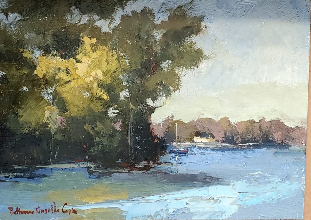 Bethanne Kinsella Cople received a classical Fine Art Education at George Washington University (GWU) in Washington, DC. Her plein air landscape paintings are known for their lush painterly quality. Loosely painted yet realistic, they invite the viewer to experience each painting anew with every observation. This quality gives her paintings a timeless appeal. Using expressive brushwork, a finely honed sense of color, and a strong composition she creates a powerful image with both depth and beauty.