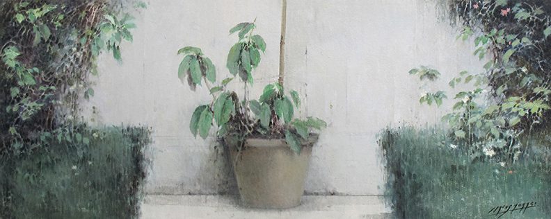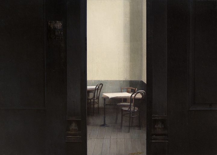 Carlos Morago’s paintings are defined by the subtle dialogue he creates between a desire to faithfully depict reality and an abiding fascination with the effects of light. He employs soft, cool, satin tones to evoke a sense of intimacy, silence, and calm.
