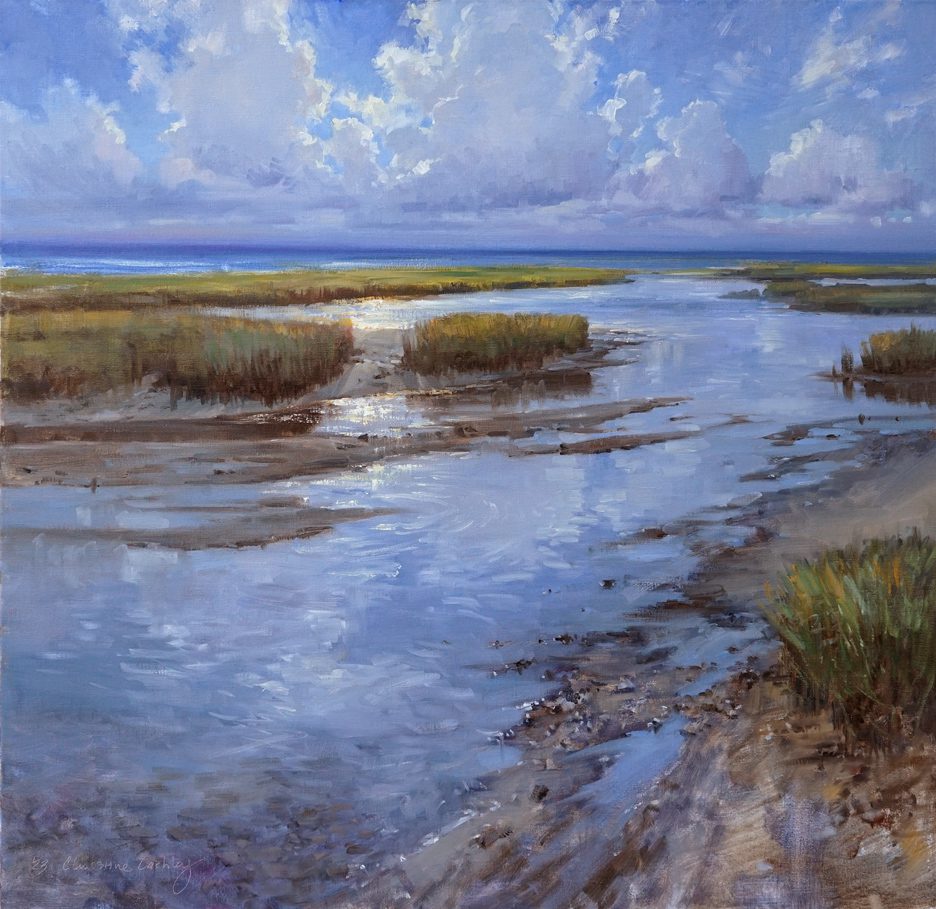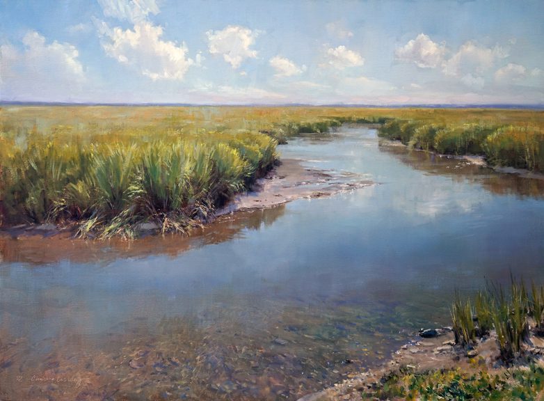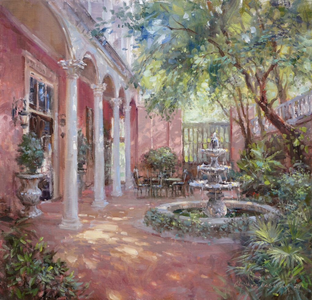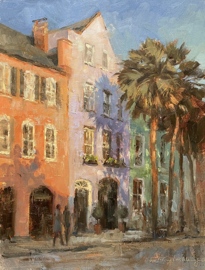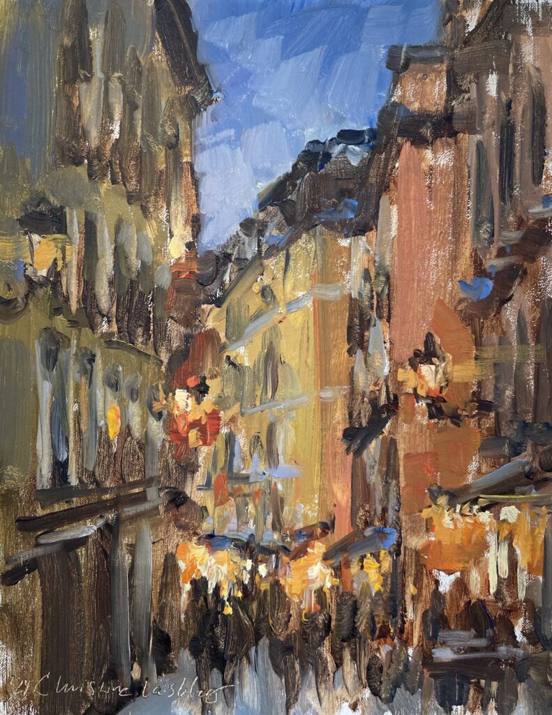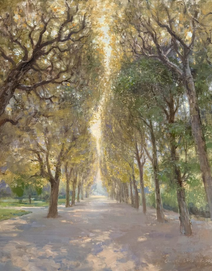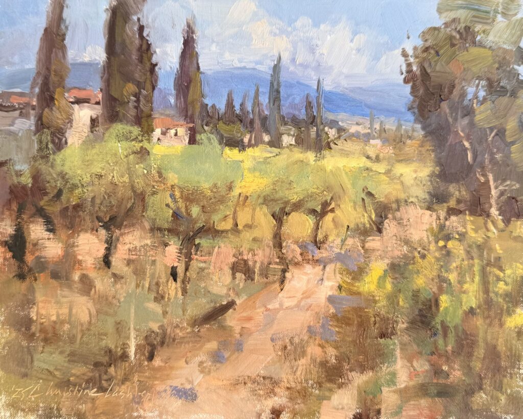 Christine has been involved in the arts all her life, with early years sketching outdoors and watching her mother and grandmother create sculpture. She spent several years in the high fashion world of Europe, and then worked in graphic design and creating murals. She began painting professionally with watercolors but moved to oils in 2009. Her work has won numerous awards, including Best of Show for both landscape and portrait work. Recent awards were the ARC Salon (Plein Air), Bold Brush Award, Best Landscape at the 27th Oil Painters of America National Show, and Best of Show at Plein Air Texas, Telluride Plein Air and Bath County Plein Air. Christine’s work has been featured in numerous art magazines, books, and online media.