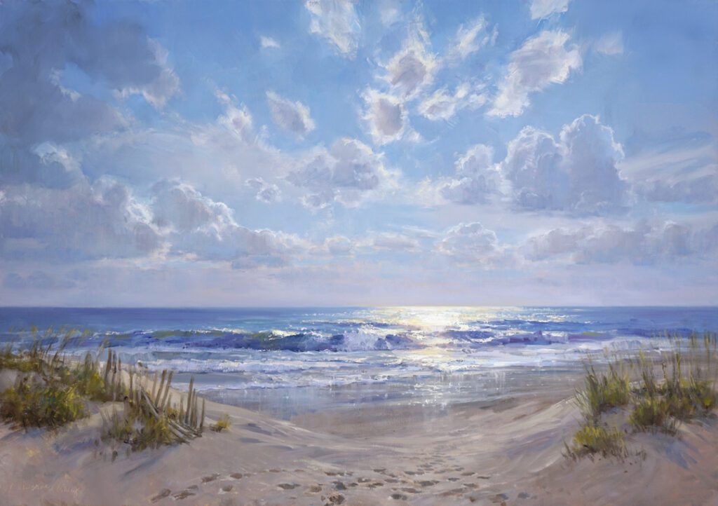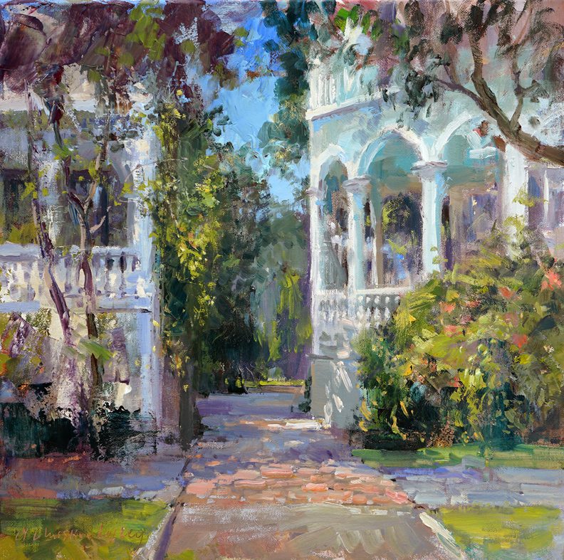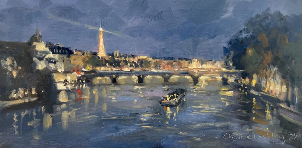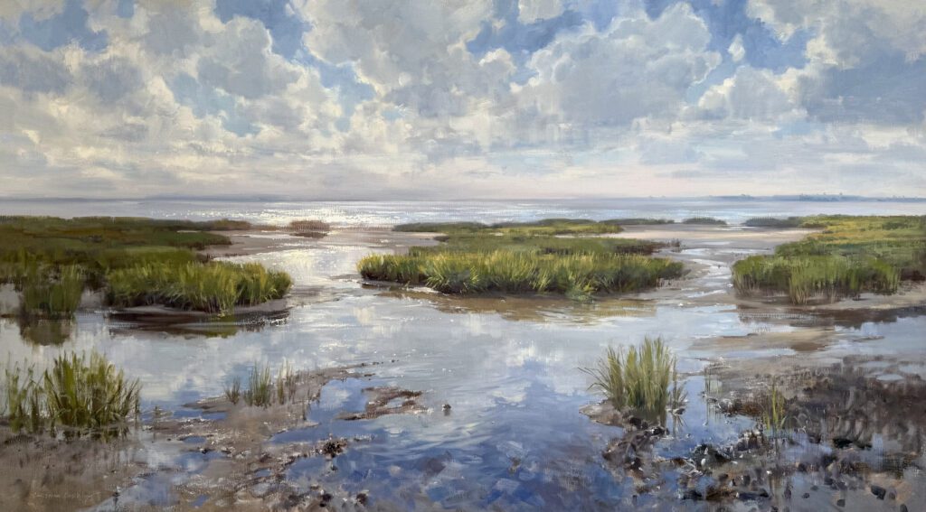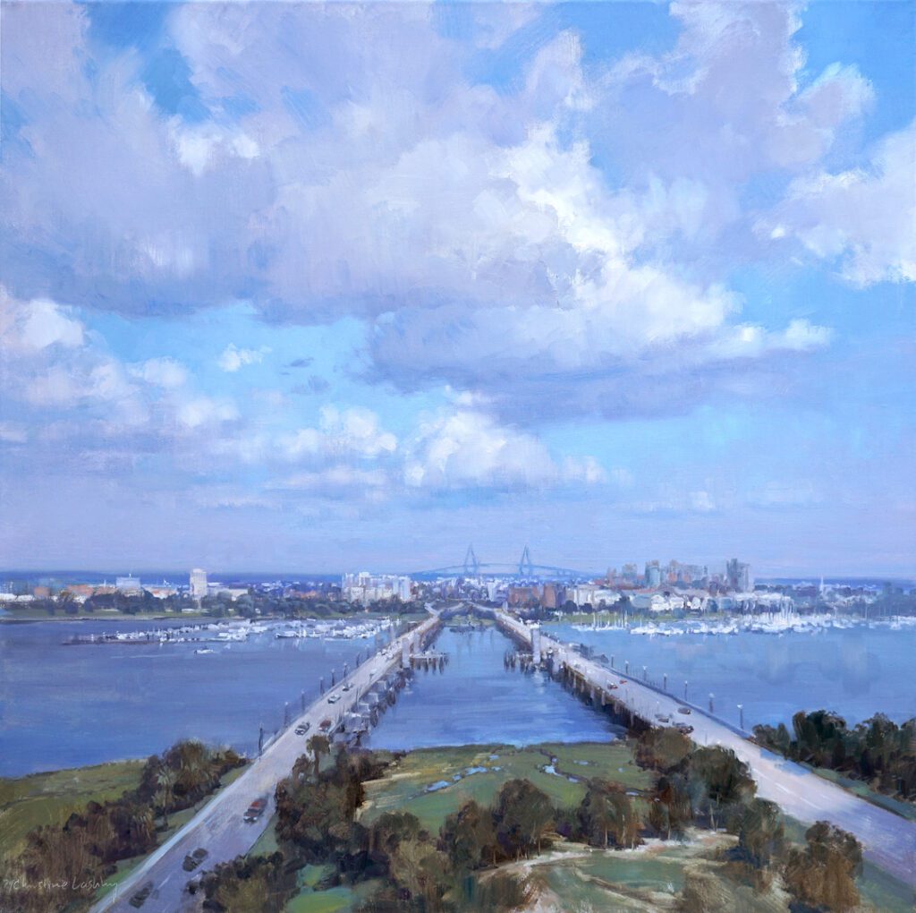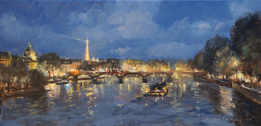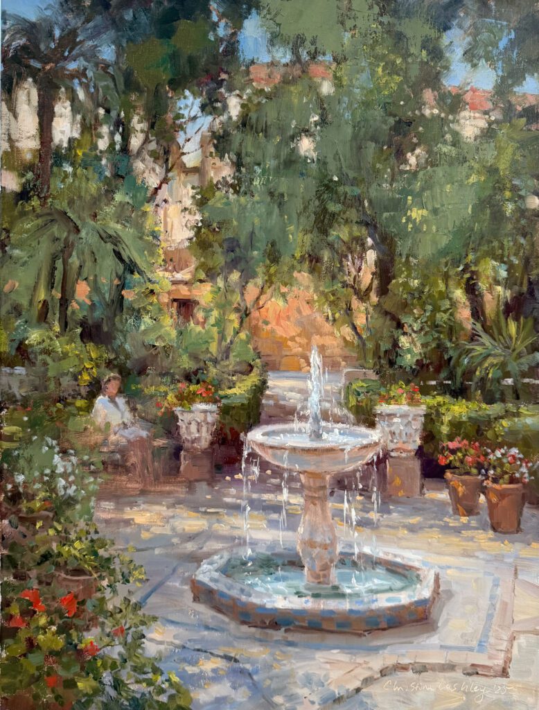 Christine has been involved in the arts all her life, with early years sketching outdoors and watching her mother and grandmother create sculpture. She spent several years in the high fashion world of Europe, and then worked in graphic design and creating murals. She began painting professionally with watercolors but moved to oils in 2009. Her work has won numerous awards, including Best of Show for both landscape and portrait work. Recent awards were the ARC Salon (Plein Air), Bold Brush Award, Best Landscape at the 27th Oil Painters of America National Show, and Best of Show at Plein Air Texas, Telluride Plein Air and Bath County Plein Air. Christine’s work has been featured in numerous art magazines, books, and online media.