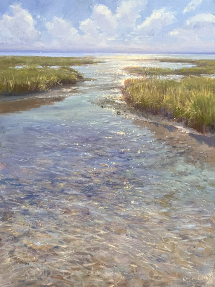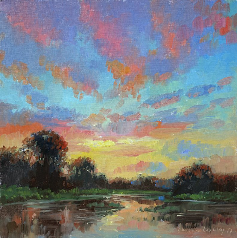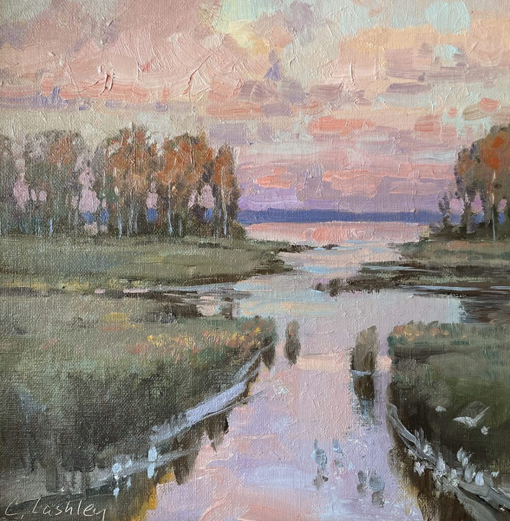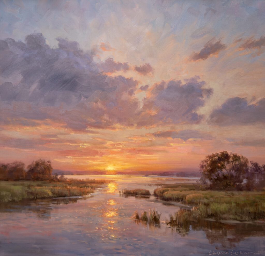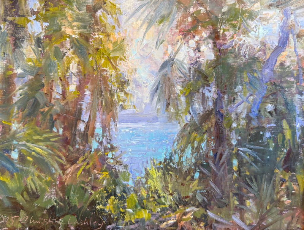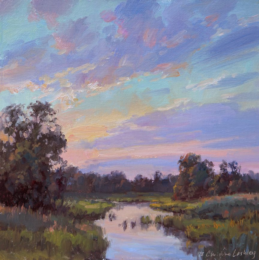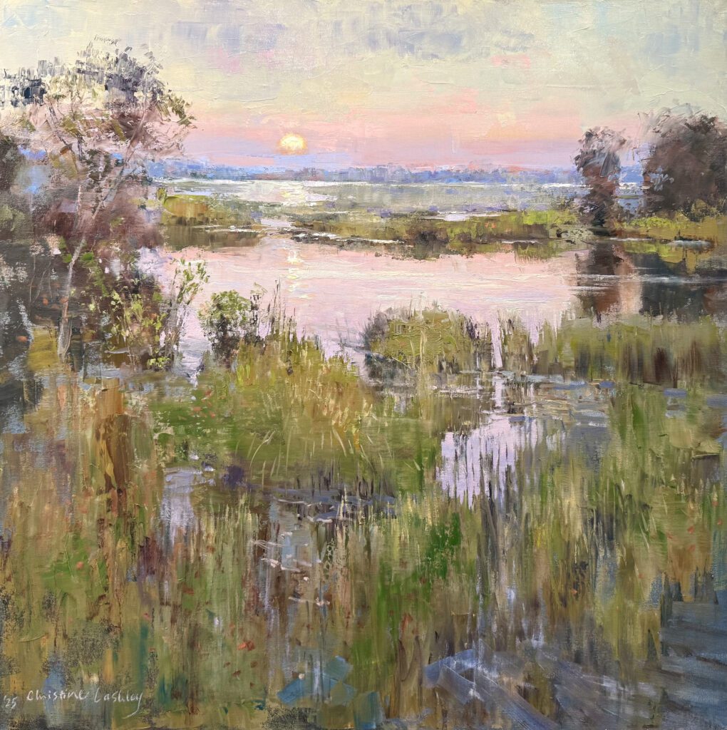 As a contemporary impressionist painter and lifelong nature enthusiast, Christine Lashley gathers most of her ideas by painting outdoors. The art she creates on location or in the studio is about the beauty of a moment held in memory. Her paintings often fuse reality and the abstract, using color and texture to look realistic from afar but dissolve into abstraction up close.