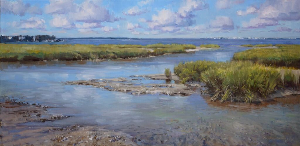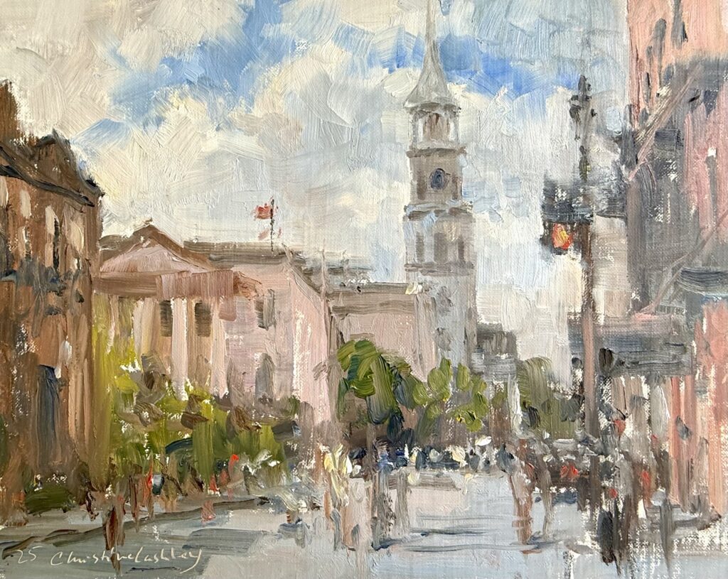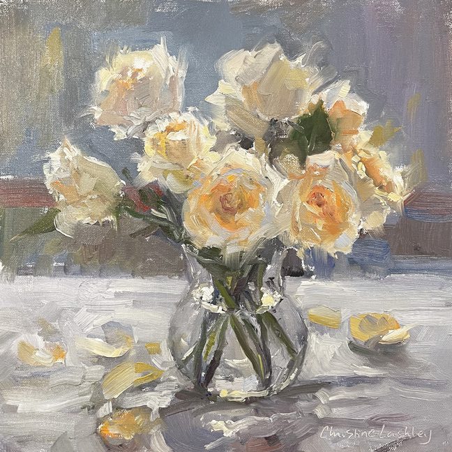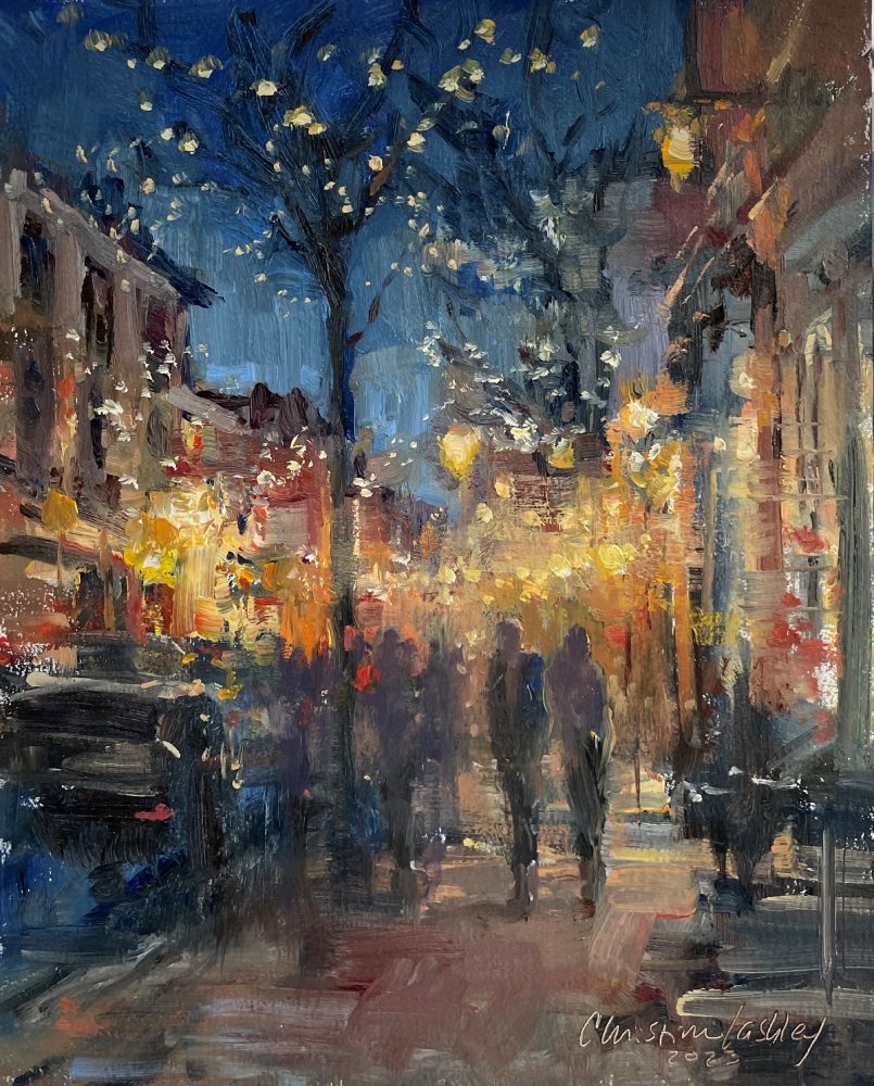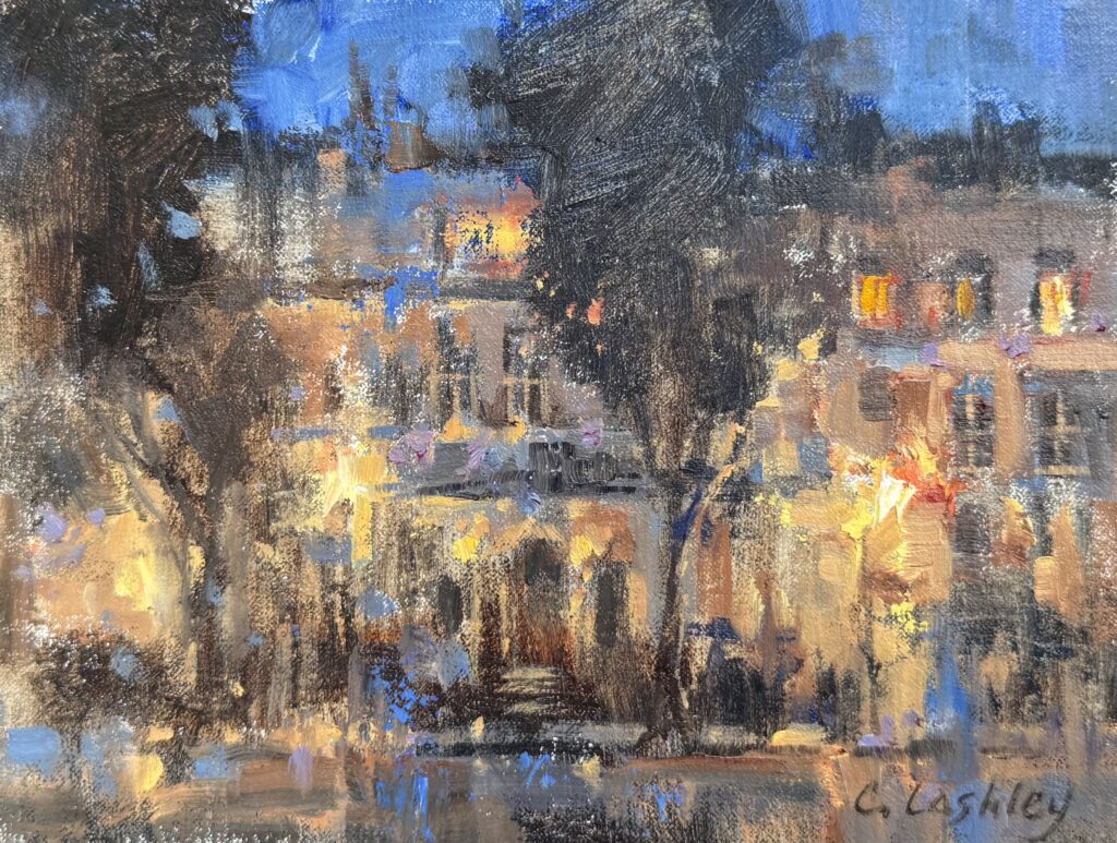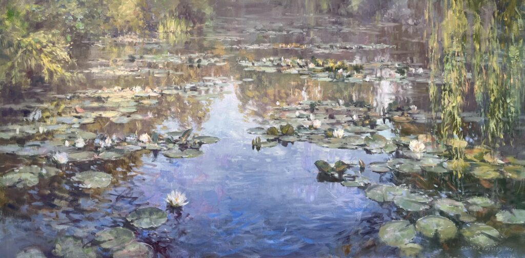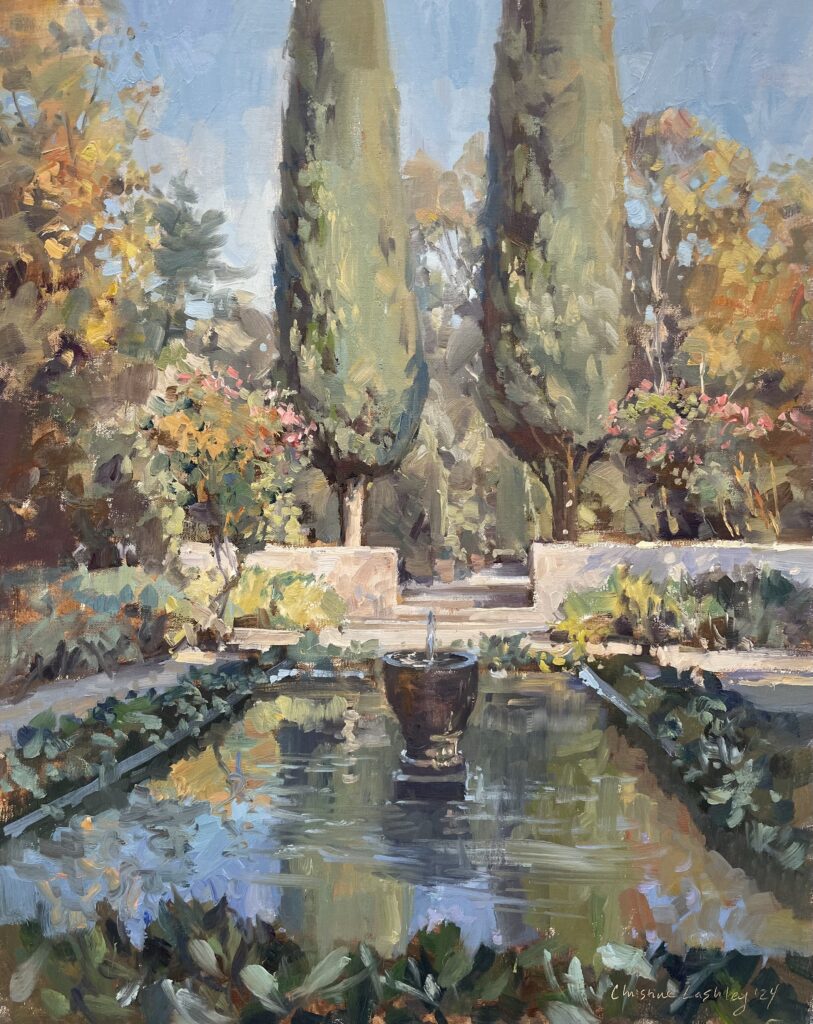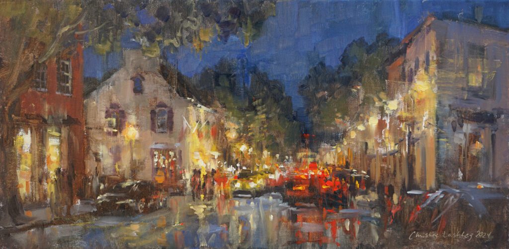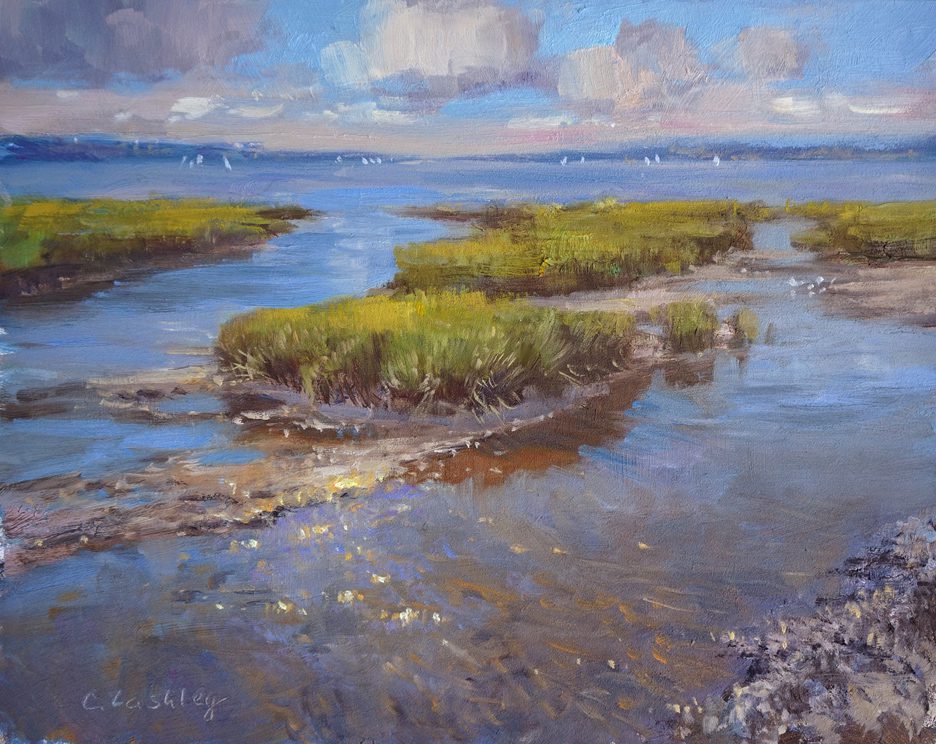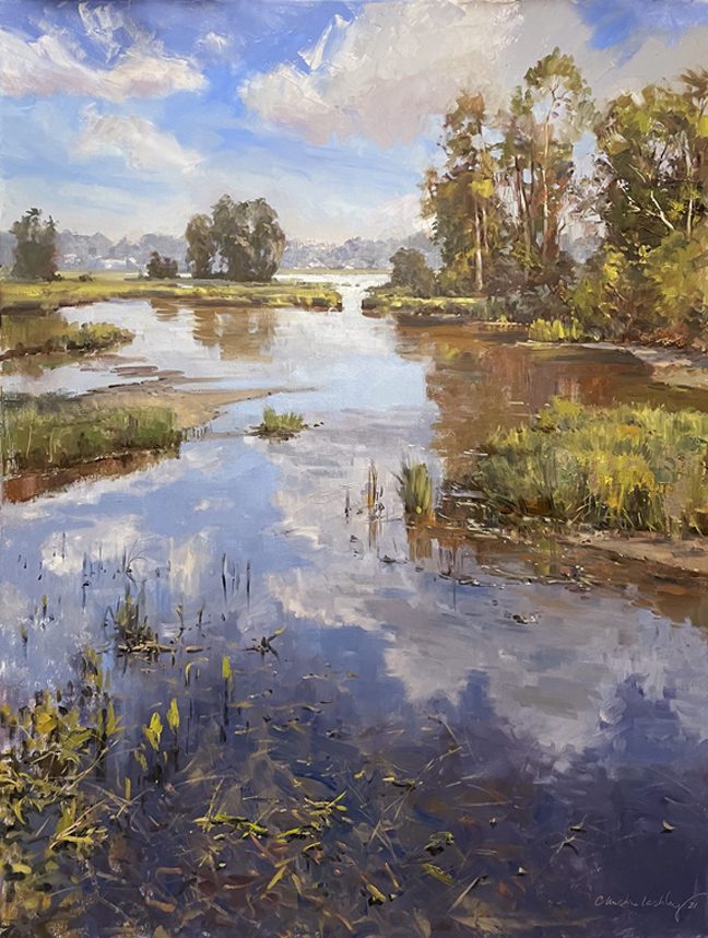As a contemporary impressionist painter and lifelong nature enthusiast, Christine Lashley gathers most of her ideas by painting outdoors. The art she creates on location or in the studio is about the beauty of a moment held in memory. Her paintings often fuse reality and the abstract, using color and texture to look realistic from afar but dissolve into abstraction up close.