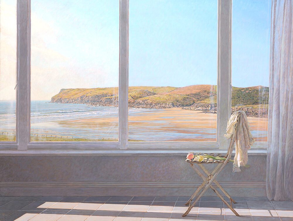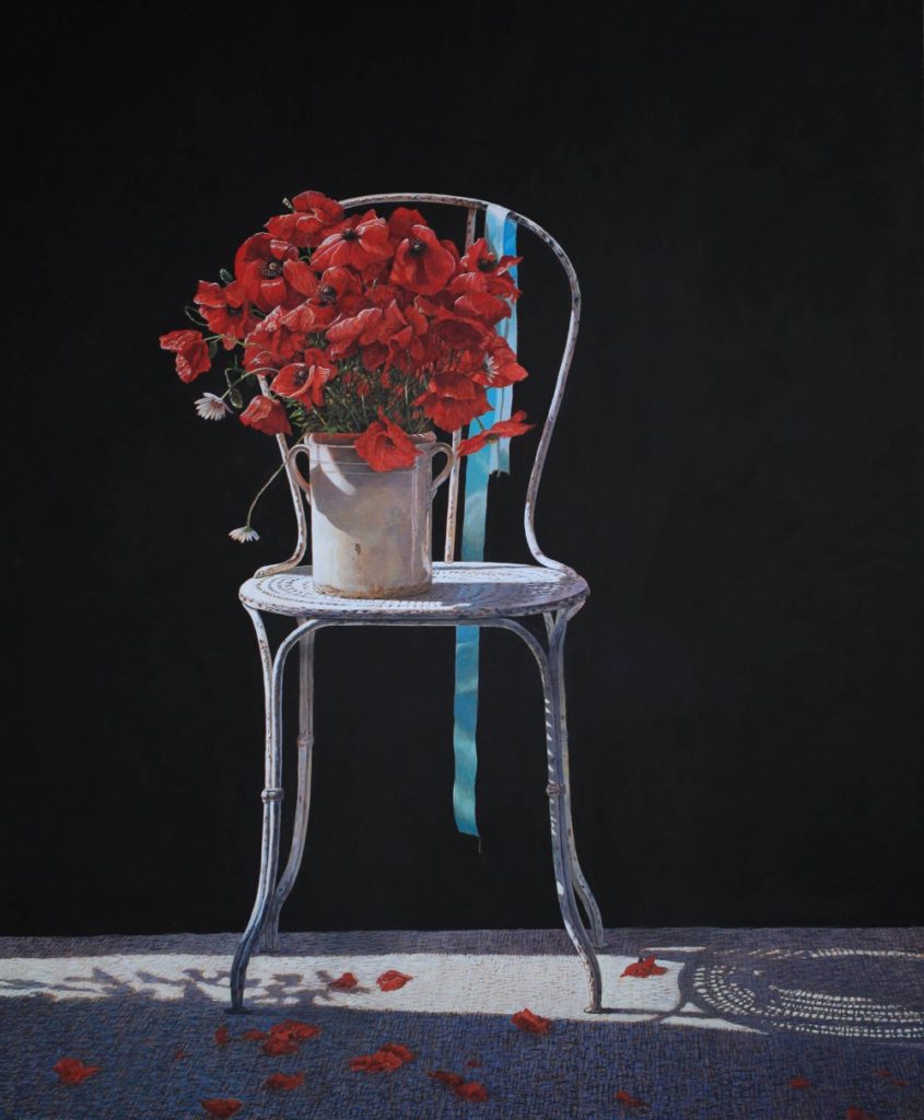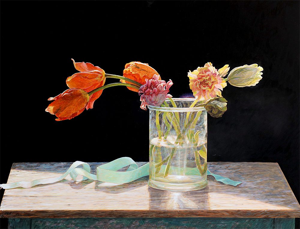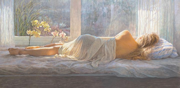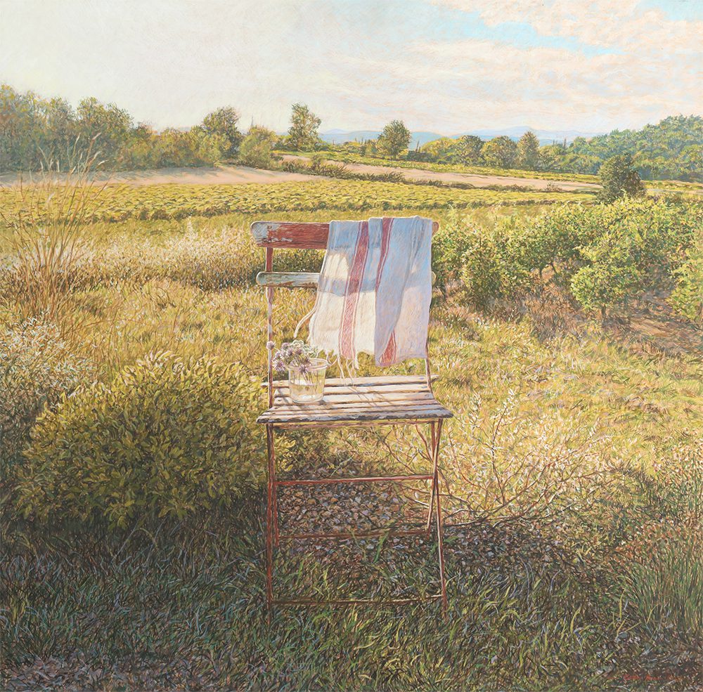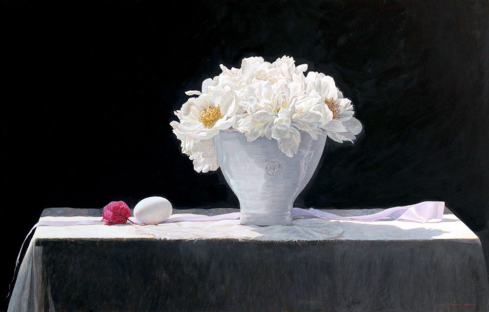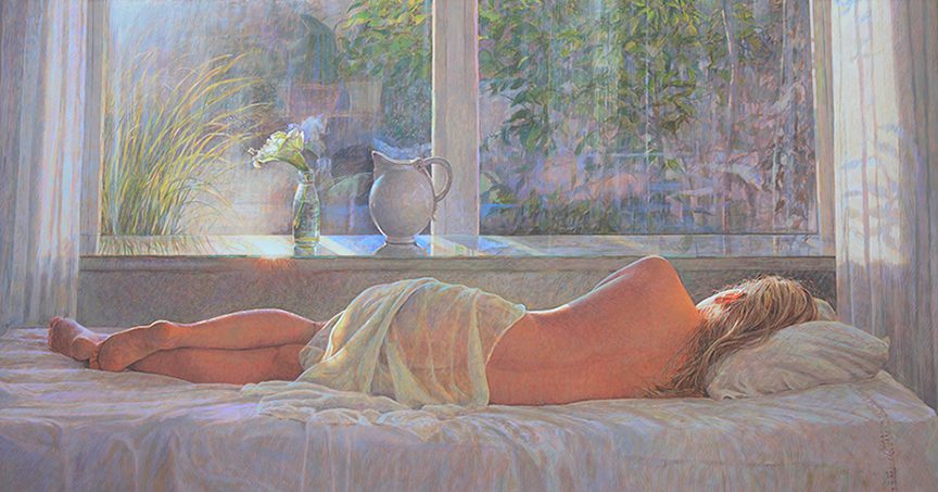 Colin Fraser is a contemporary Scottish painter, who is recognized for his intricate still lifes, interiors, and landscapes. He was born in Glasgow, Scotland in 1957 and received training to become a teacher at Brighton Polytechnic in England. Fraser taught courses in art for several years in the seaside town of Worthing, England. He moved to Sweden in 1981 to fulfill a teaching position, but left this role in 1983 to pursue painting and to exhibit his work full time. As an artist he has mastered watercolors, oils, and acrylics. However, he preferred a medium that was more convenient for traveling than oil and more durable than watercolor. Thus, he began reading books about the egg-tempera painting technique and taught himself. This painting technique was the primary technique used during the Byzantine Period and the Italian Renaissance. The egg yolks are mixed with pigment, it’s a permanent, quick drying mixture, and creates stunning effects within works of art. Egg-tempera technique gives Fraser’s work a translucent, bright quality, which makes his compositions feel extremely open and freeing. The artist says; “It’s a medium fraught with technical difficulties, but therein lies its charm. Brushstrokes dry instantly and are never fully opaque, so just about every mark the painter makes shows.” Colin Fraser and his wife currently live in Sweden with their two children.