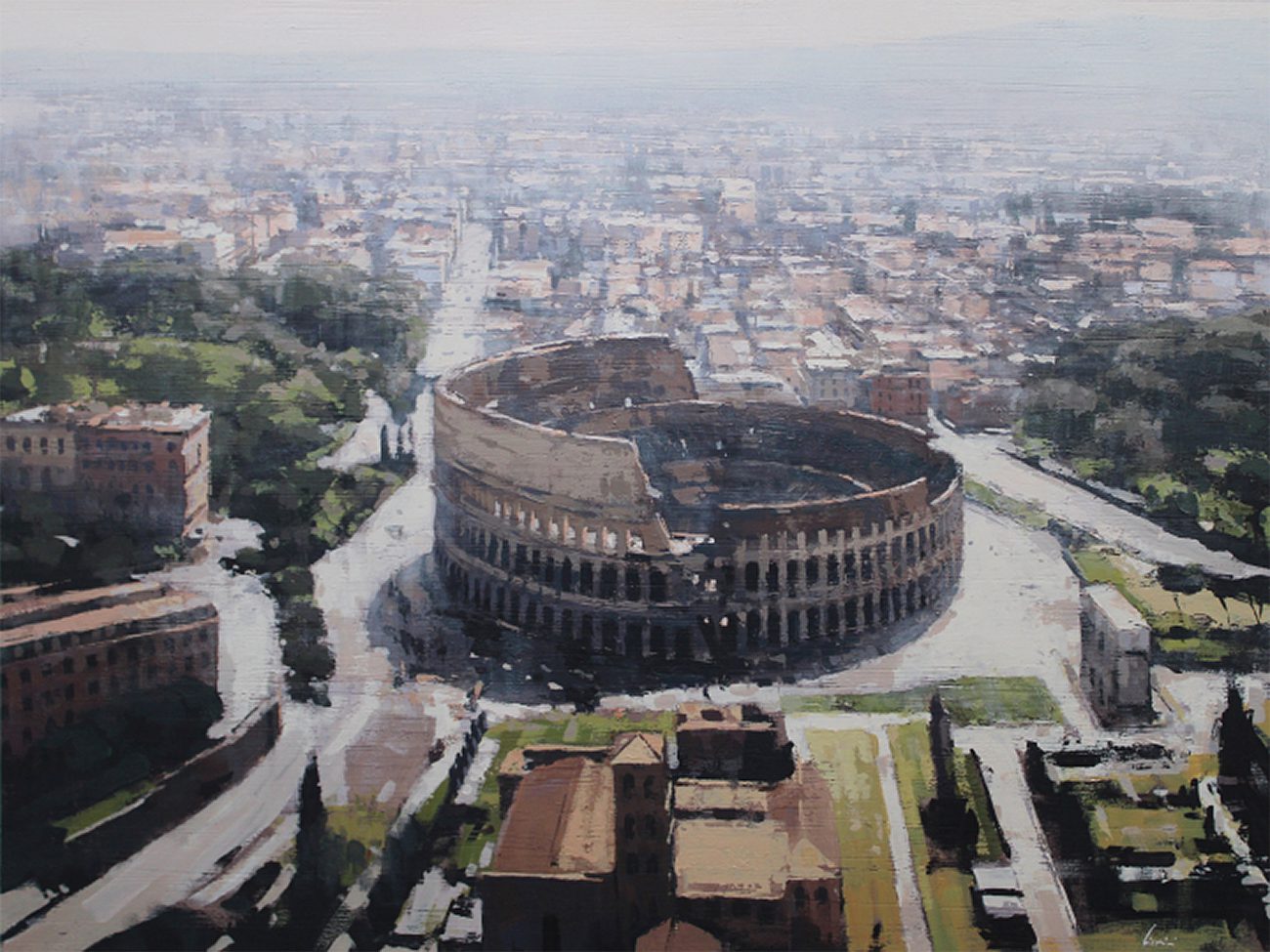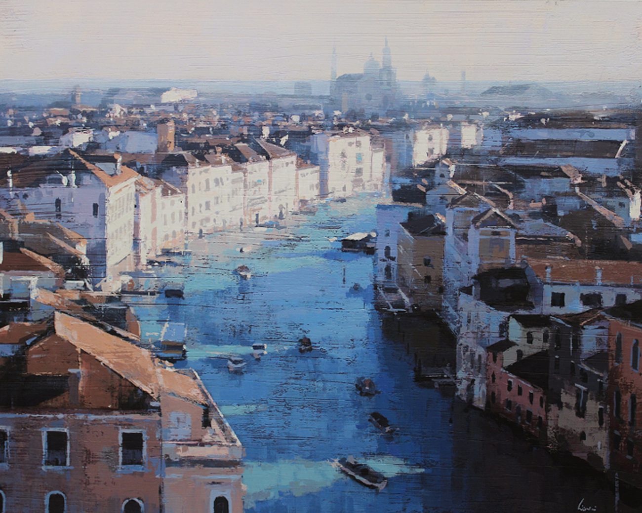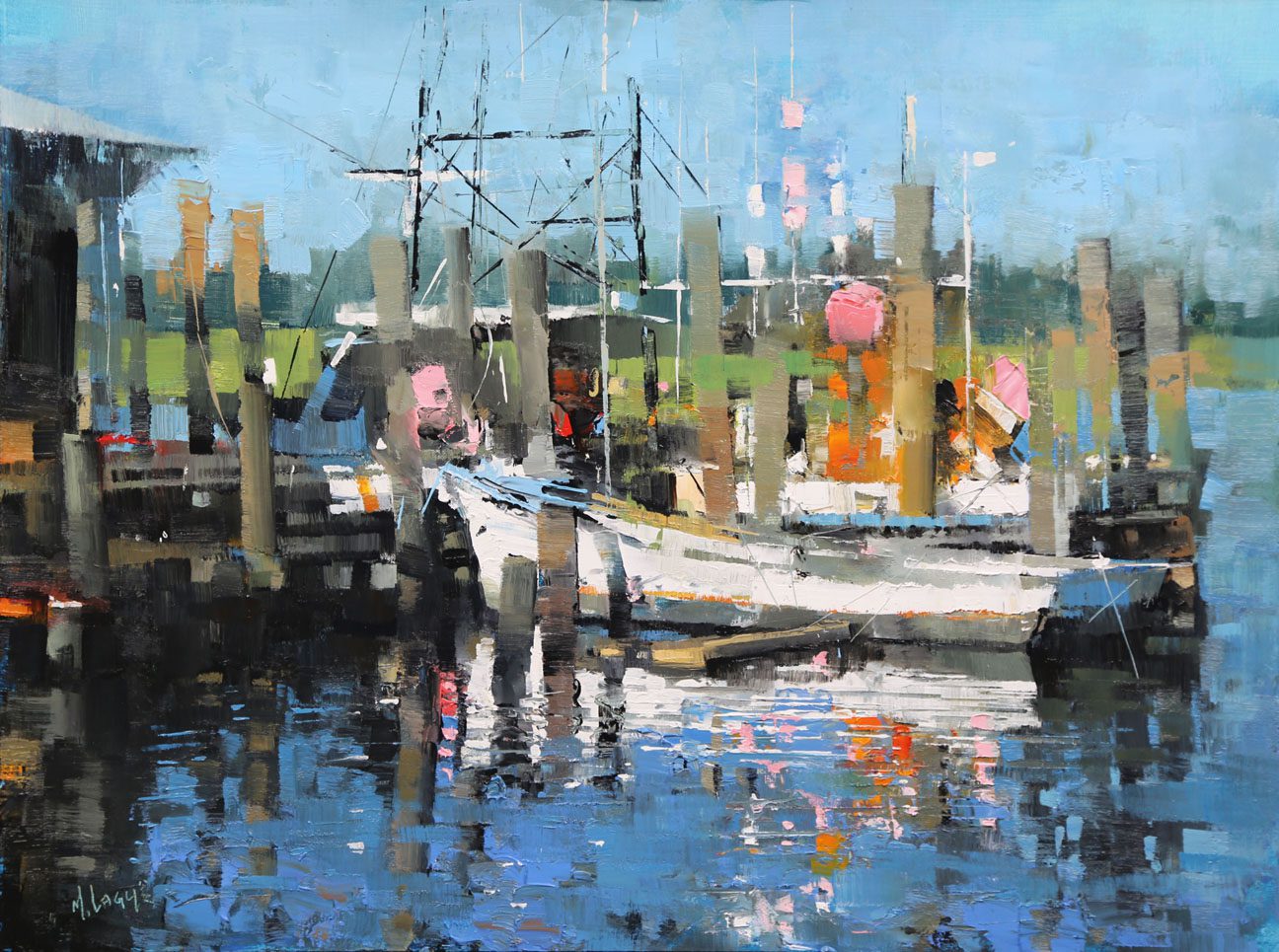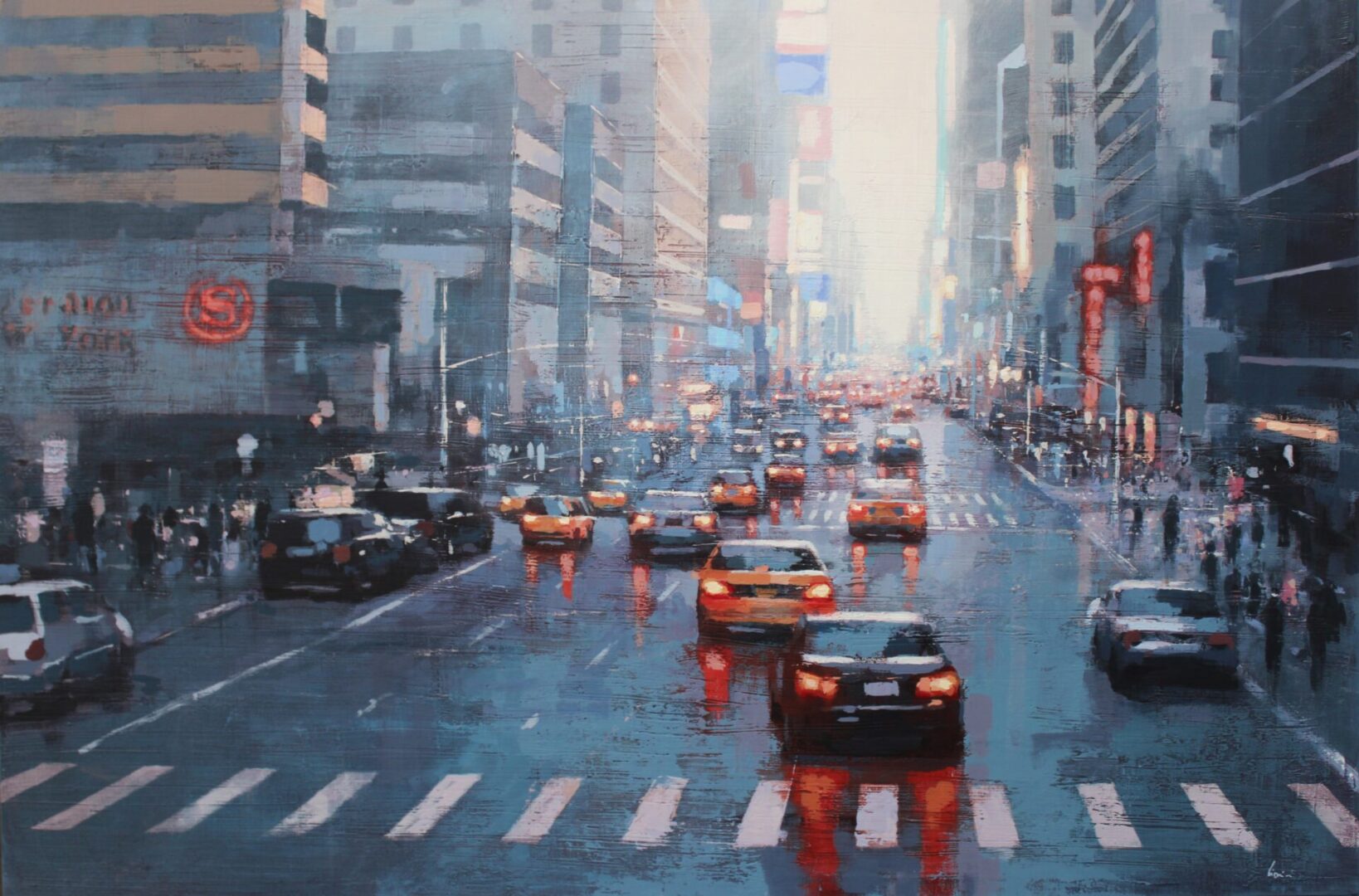 By contrast, Laguë’s canvases hum with energy. Through confident brushwork and bold color, he distills the architecture and intensity into striking compositions that balance chaos and control. His perspectives are fresh, dynamic, and thoroughly contemporary.