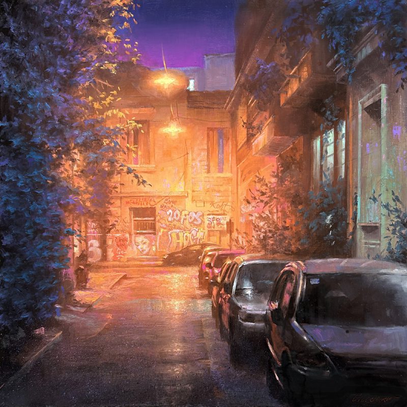 Glakas began exhibiting his work in galleries soon thereafter. He spent five years studying with fellow Principle Gallery artist Robert Liberace, as well as portrait and still life painter Danni Dawson. His work has since earned numerous honors, including awards from the Portrait Society of America and the Butler Institute of American Art, establishing him as a dynamic and accomplished voice in the world of contemporary representational painting.