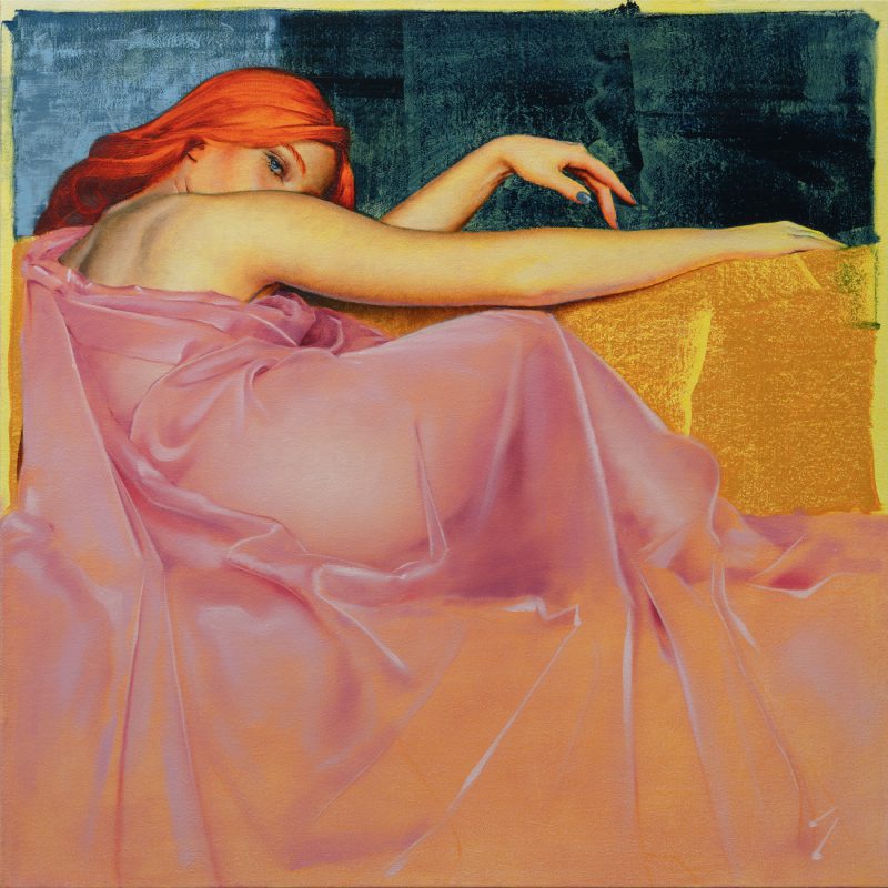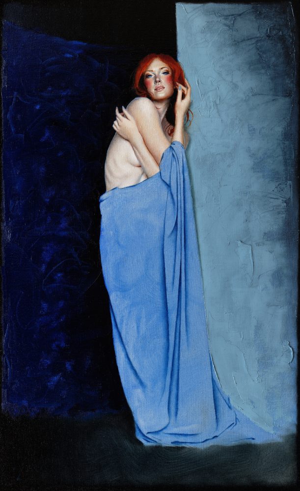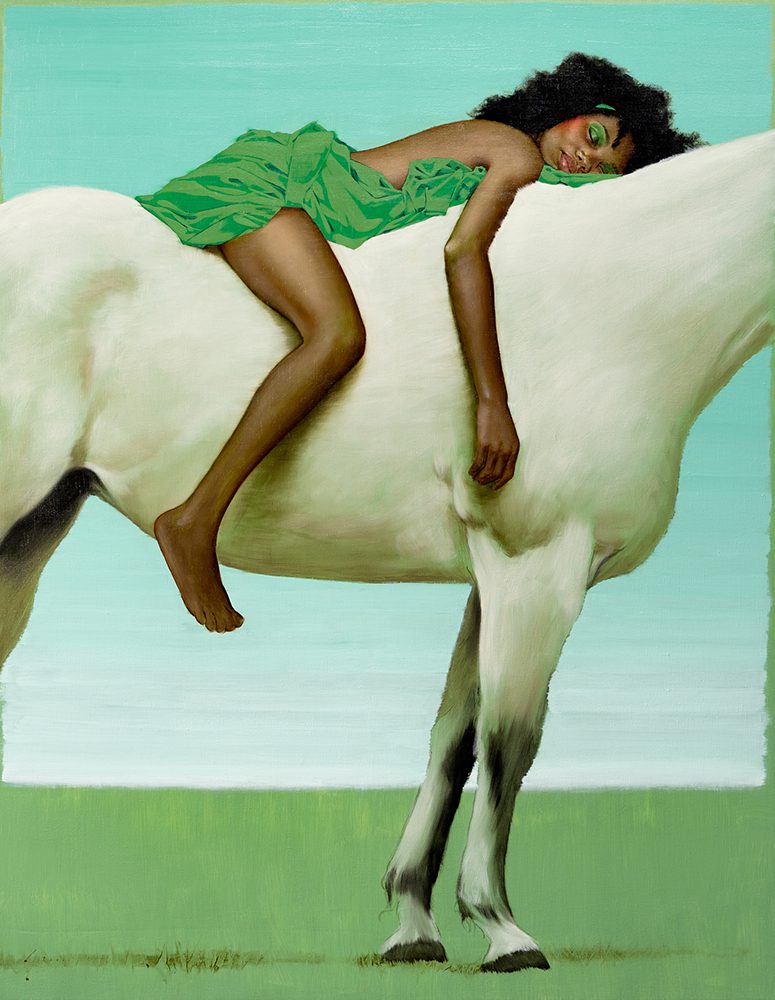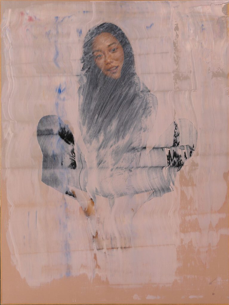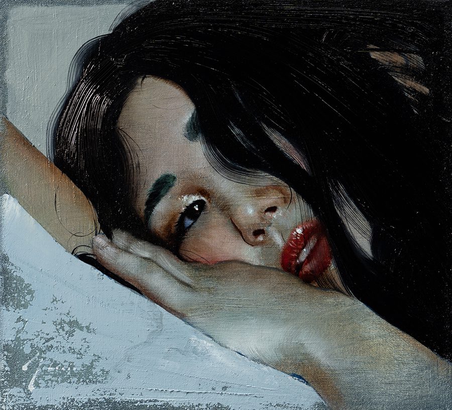 Louis is best known for his oil paintings of female figures, focusing on the exquisite strength and alluring complexity of women throughout saturated color, flattened space, and texture. His technical painting skills, his eye for capturing an expression that portrays an intimate story, and his material experimentation are combined together to create a dynamic harmony between emotion and design. He is fascinated with moments of human connection and that fascination exhibits itself in his work through cleverly posed subjects, use of texture, and color amid abstracted space.