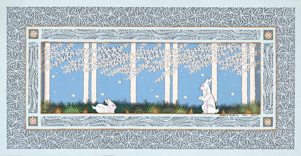 Jennifer Hudson is an award-winning Maryland-based cut-paper artist and painter. She began her career as a watercolor painter, focusing on realistic nature scenes and surreal, fantasy-inspired illustrations. Her deep love of the natural world remains evident in her continued use of flora and animals throughout her work.