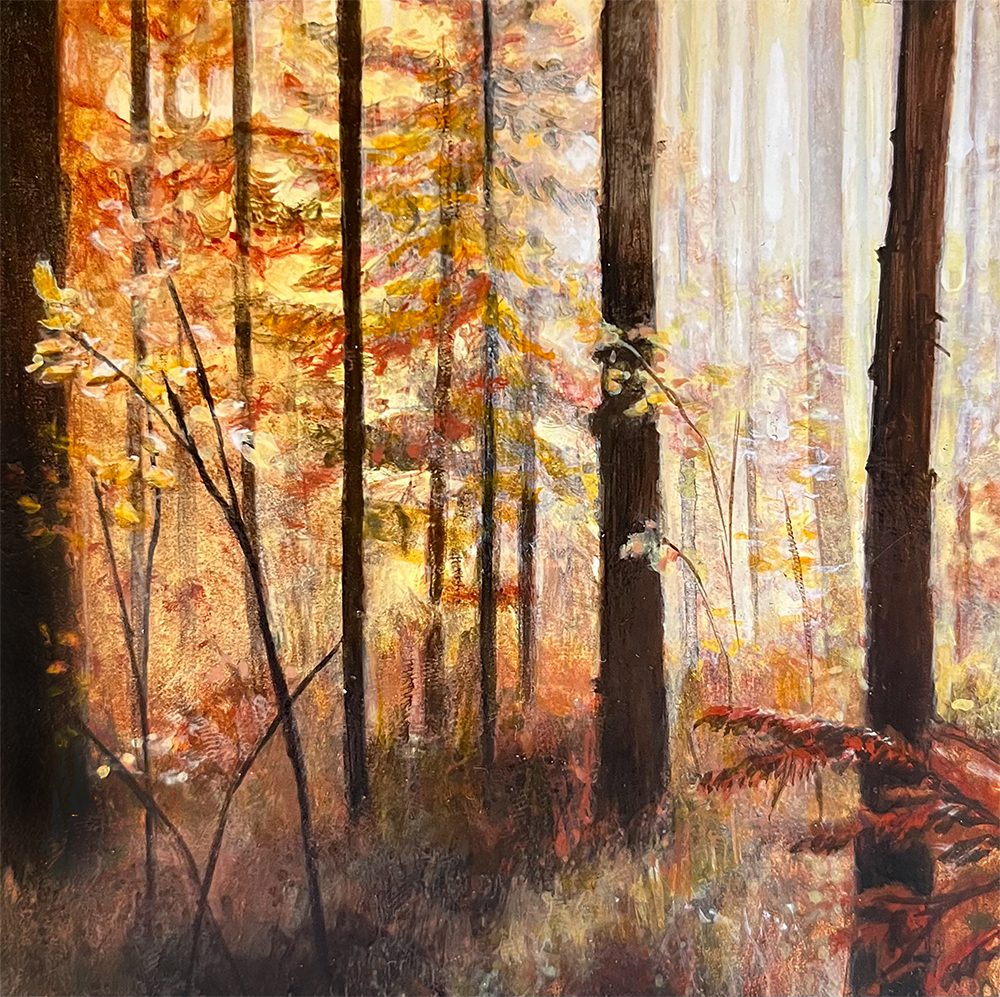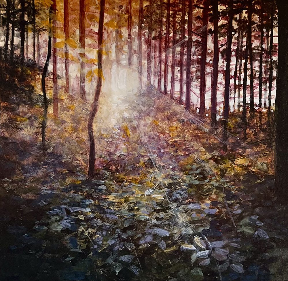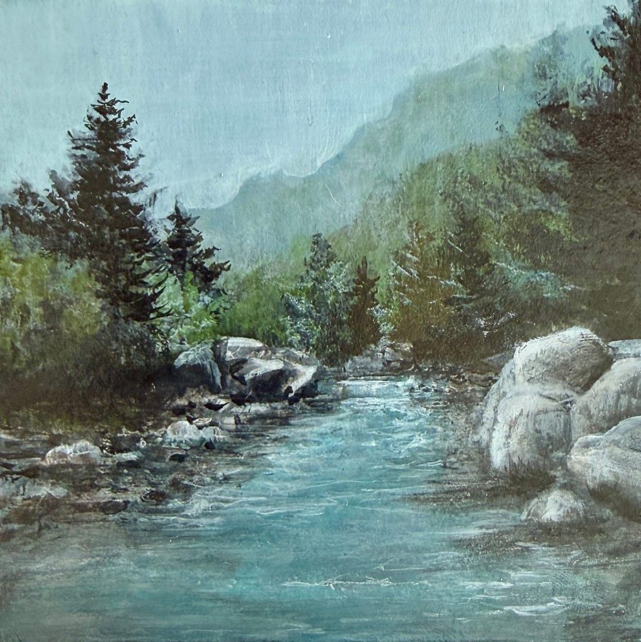 Aline’s work explores the theme of serene motion on land and water. Her technique of creating movement with brushstrokes in tranquil nature scenes evokes a strong sense of childhood nostalgia. Painting also serves as a source of personal identification for Aline, reflecting the nuances of her childhood spent exploring the woods of Maine. Her works reveal that precision of detail and attention to form are as important as the graceful balance and harmonious flow of the overall composition. Through this interplay, Aline’s art invites quiet reflection on the natural world and the passage of time.