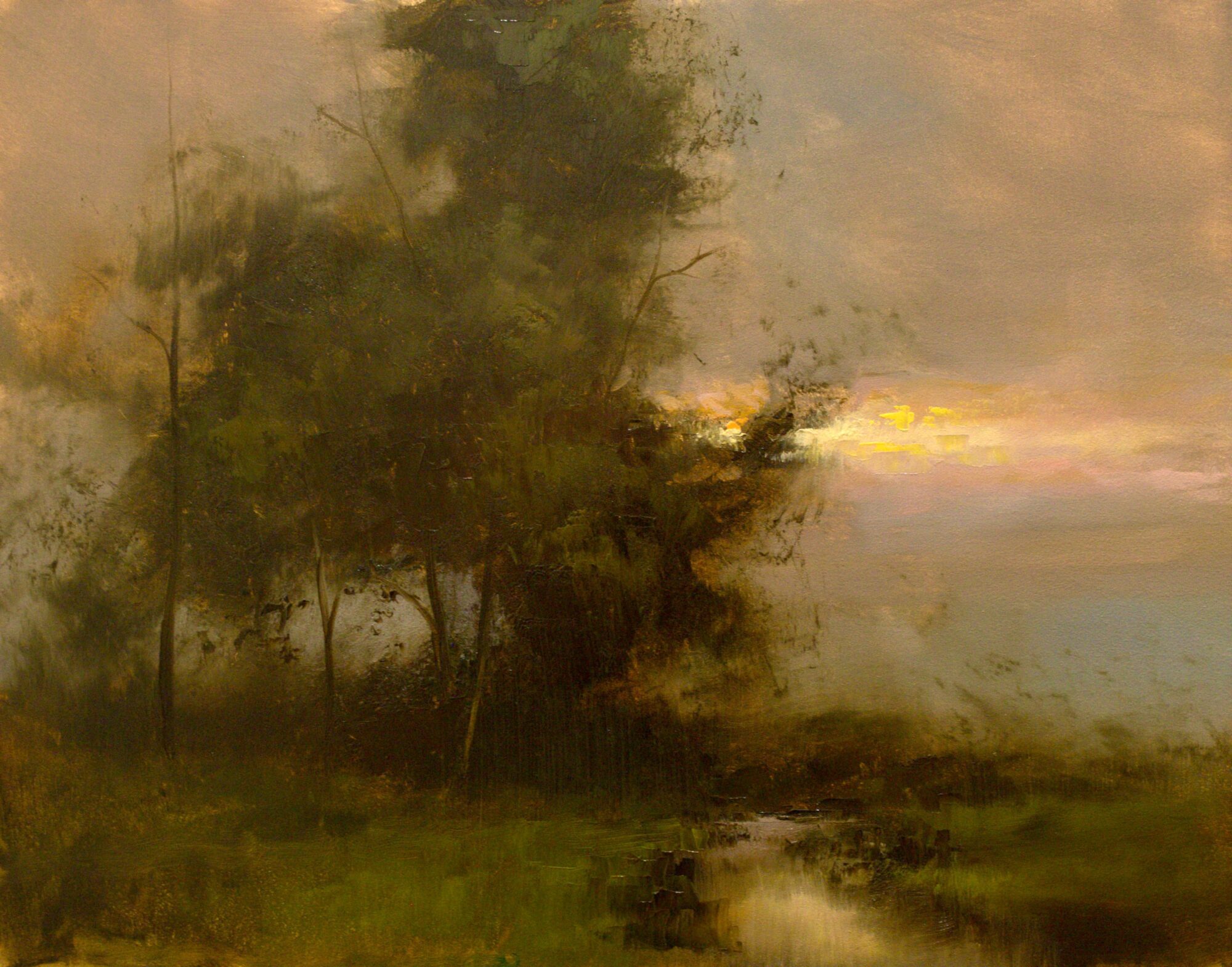 Justin Worrell is a Virginia-based tonalist landscape artist. An oil painter, Worrell applies paint thinly and uses a dry brush technique to create dreamy, atmospheric, contemporary tonalist works that seek a balance between the temporal and eternal realms, hoping to arrive at a heightened spiritual existence. Originally painting as a hobby when time allowed, Worrell…