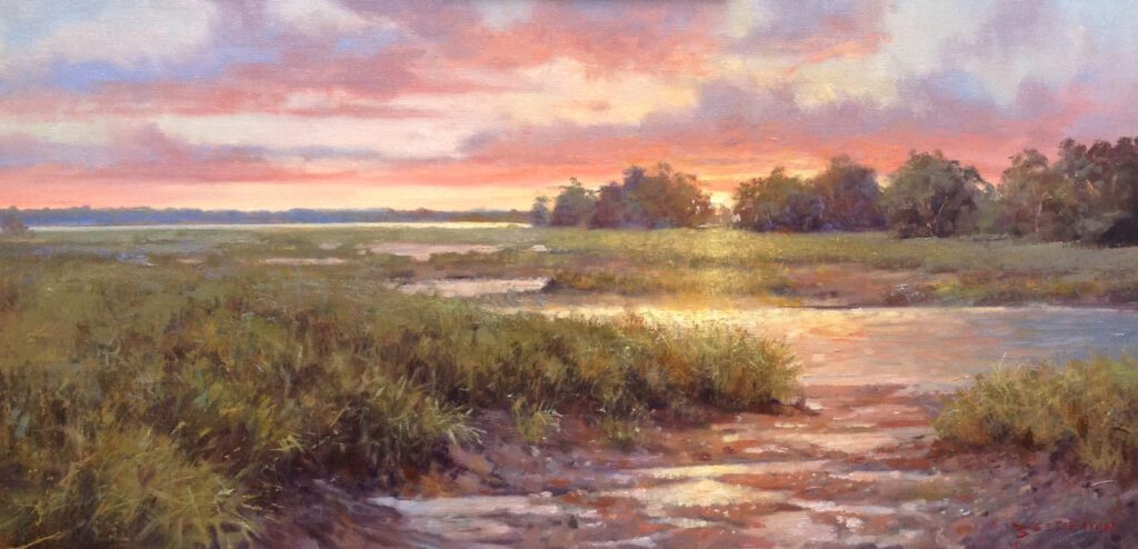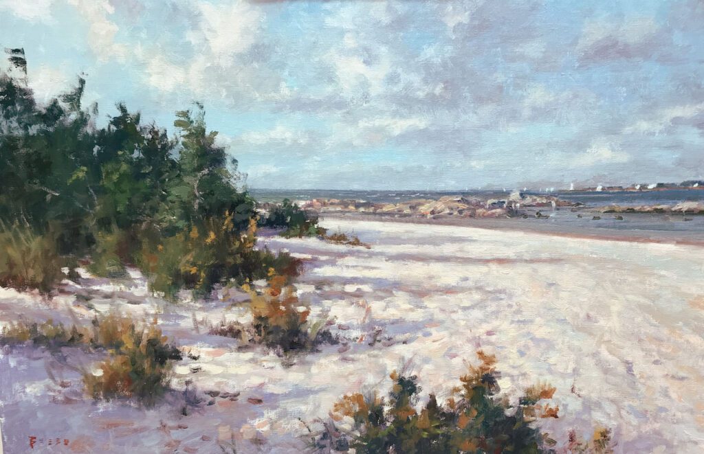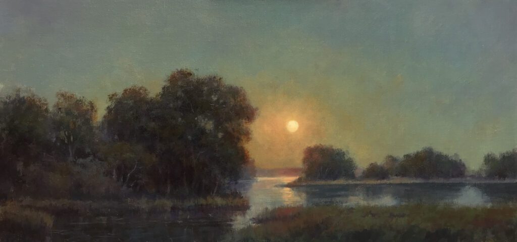 Starting with a preliminary value sketch, Paul develops his paintings using multiple layers of color from a limited palette. His finished Paintings are highly expressive works that often feature the luminous skies and muted colors that define his subject in different atmospheric conditions. He enjoys studio painting as well as plein air.