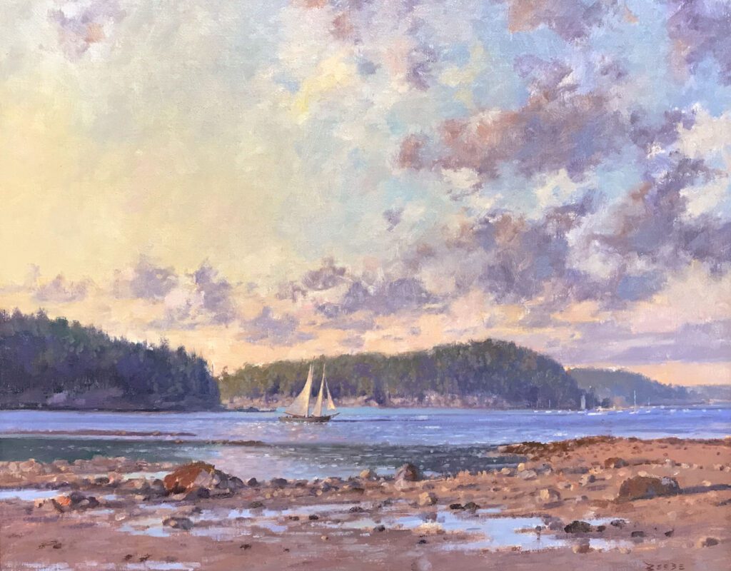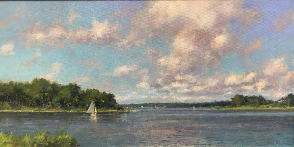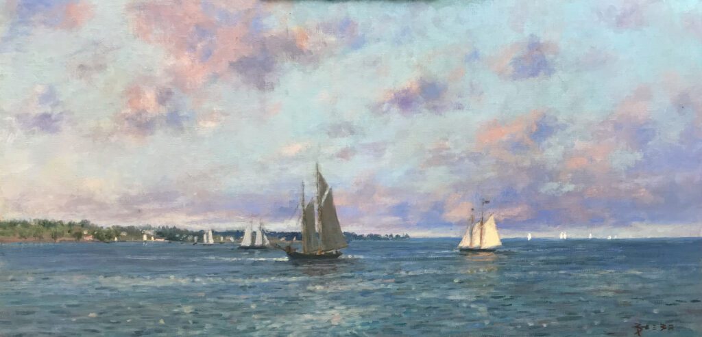 Paul has been painting since age 15, but found himself drawn to marine subjects after his first visit to the island of Martha’s Vineyard 28 years ago. He became inspired by its rich maritime history as well as the beautiful effects of light and atmosphere that are found near the ocean.