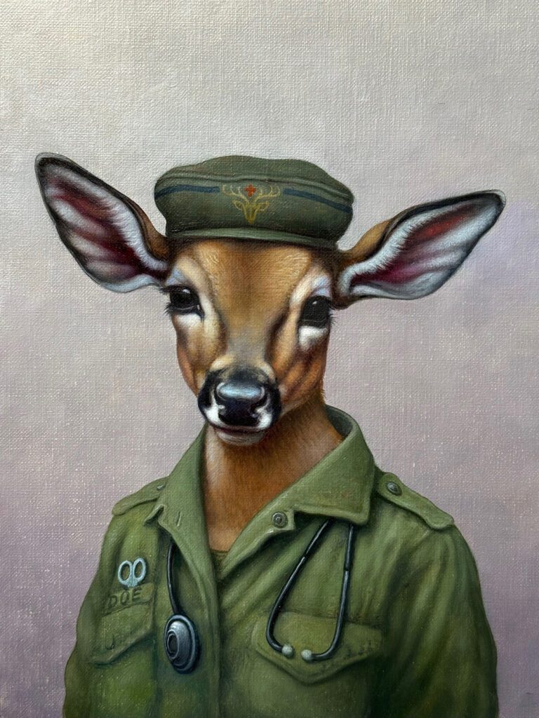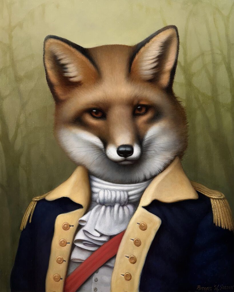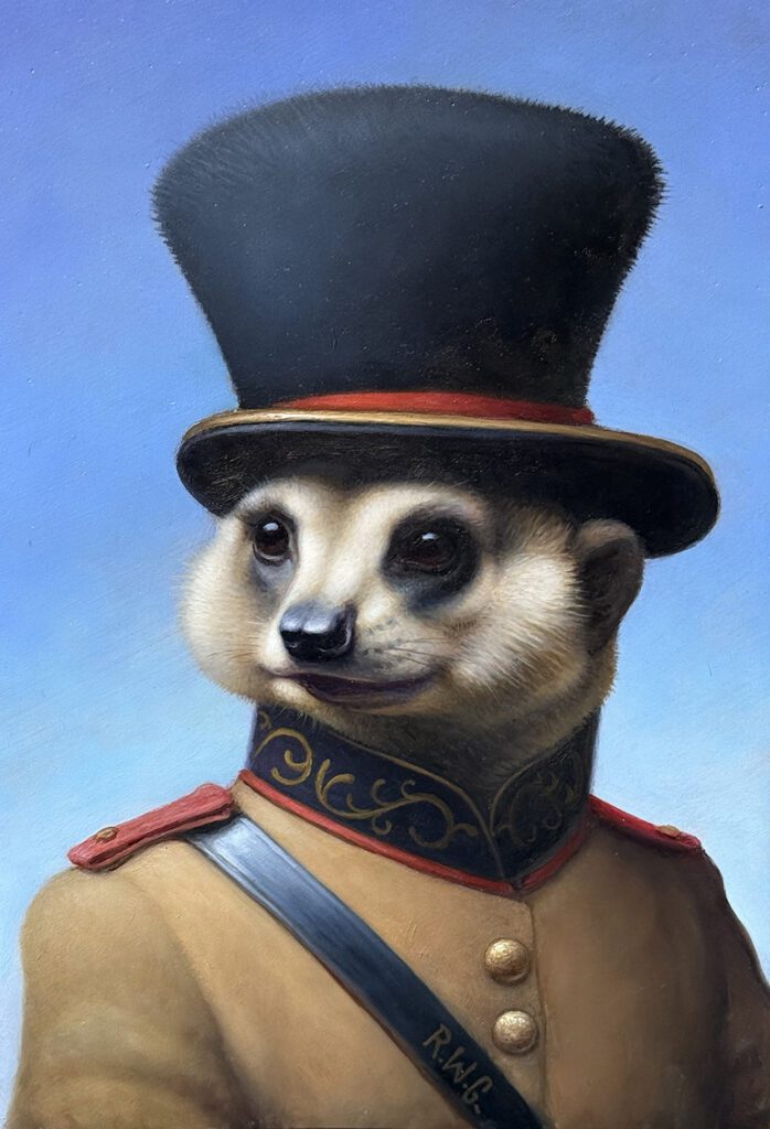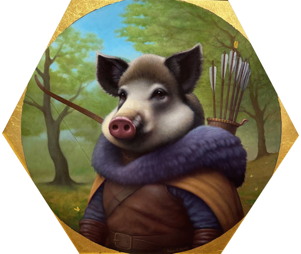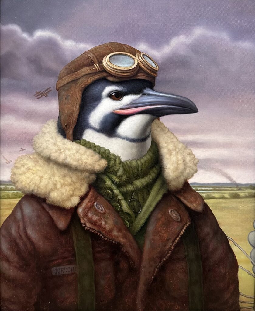 In this striking new series, Russell Gordon takes animal portraiture to the next level. He transcends whimsy and enters the realm of myth, painting each figure not as a caricature but as a noble character imbued with gravitas and wit. These are not simply animals dressed as humans; they are dignified citizens of a parallel history, rendered with extraordinary realism and narrative depth. Join us for the opening reception and experience this compelling body of work in person.