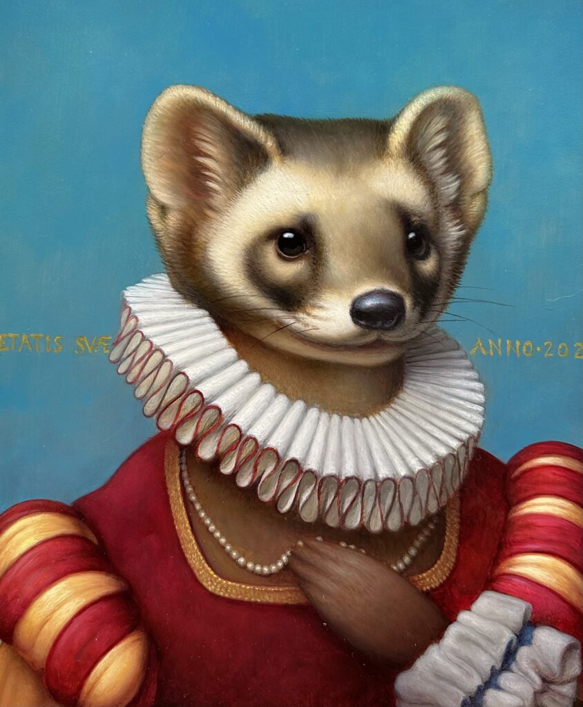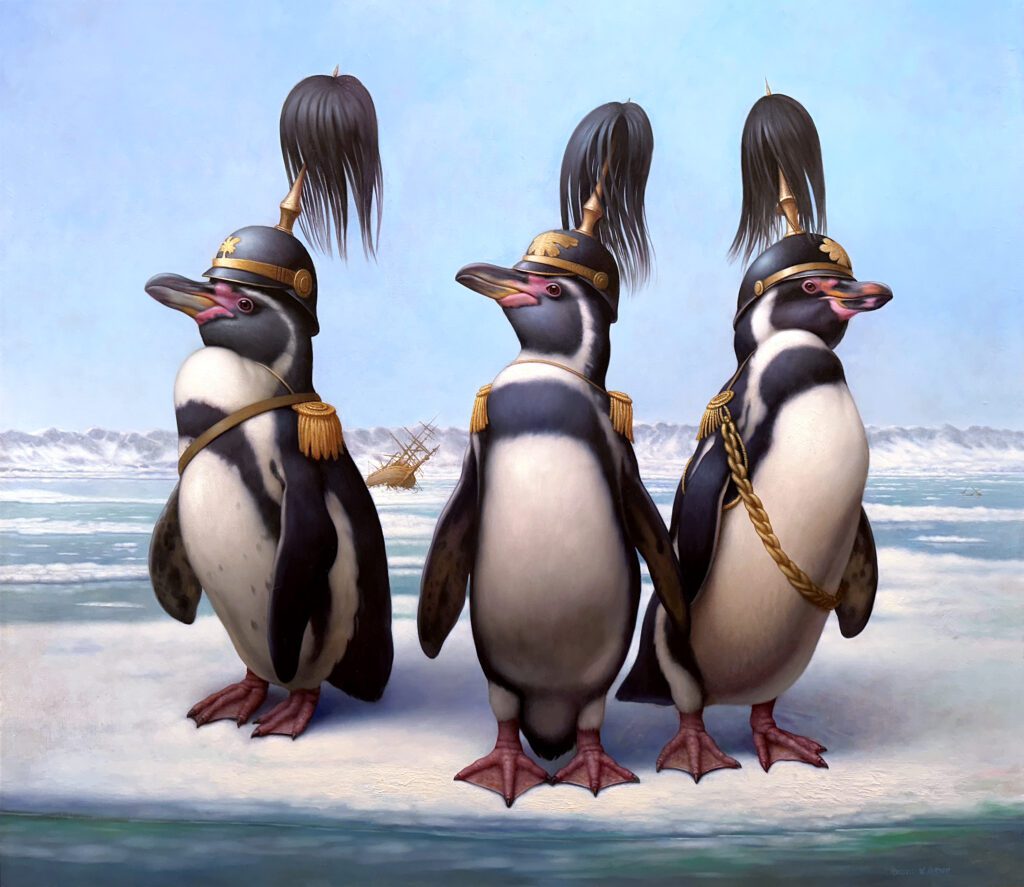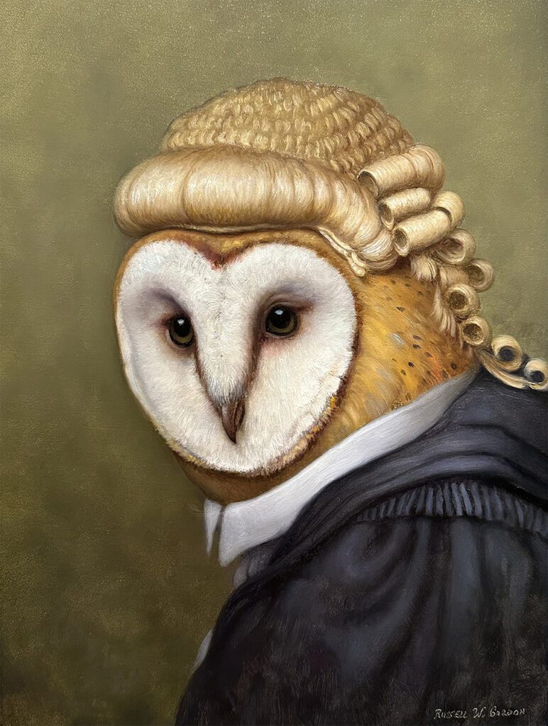 Russell Gordon was born in 1968 in Maryland and began drawing at an early age. Often combining layered symbolism with subtle wit, Gordon constructs each work through carefully applied layers of oil paint and a strong command of light and shadow. Painted directly from life, his compositions invite the viewer into windows of alternate yet convincing realities. Viewers are often reminded of seventeenth-century Dutch vanitas themes that allude to life’s fragility while celebrating its pleasures. His work engages contemporary subject matter within ancient, mythic narratives, resulting in pieces that are both visually captivating and intellectually engaging.