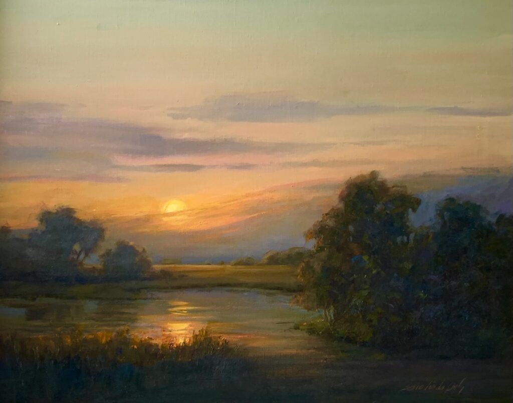 Based in Easton, Maryland, Poly is a member of the Washington Society of Landscape Painters, the Oil Painters of America, the Mid-Atlantic Plein Air Painters of America, and New York City’s Salmagundi Club.
