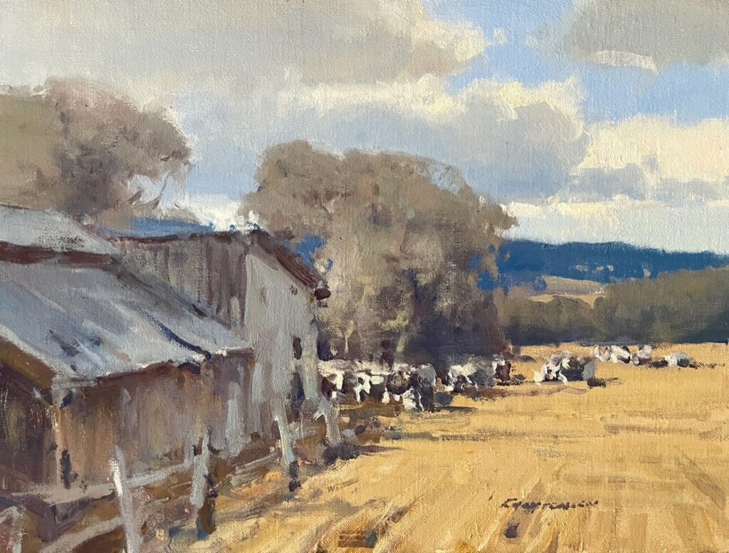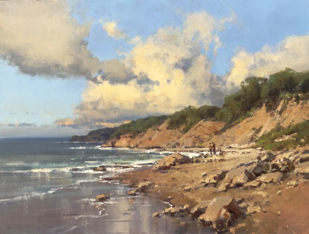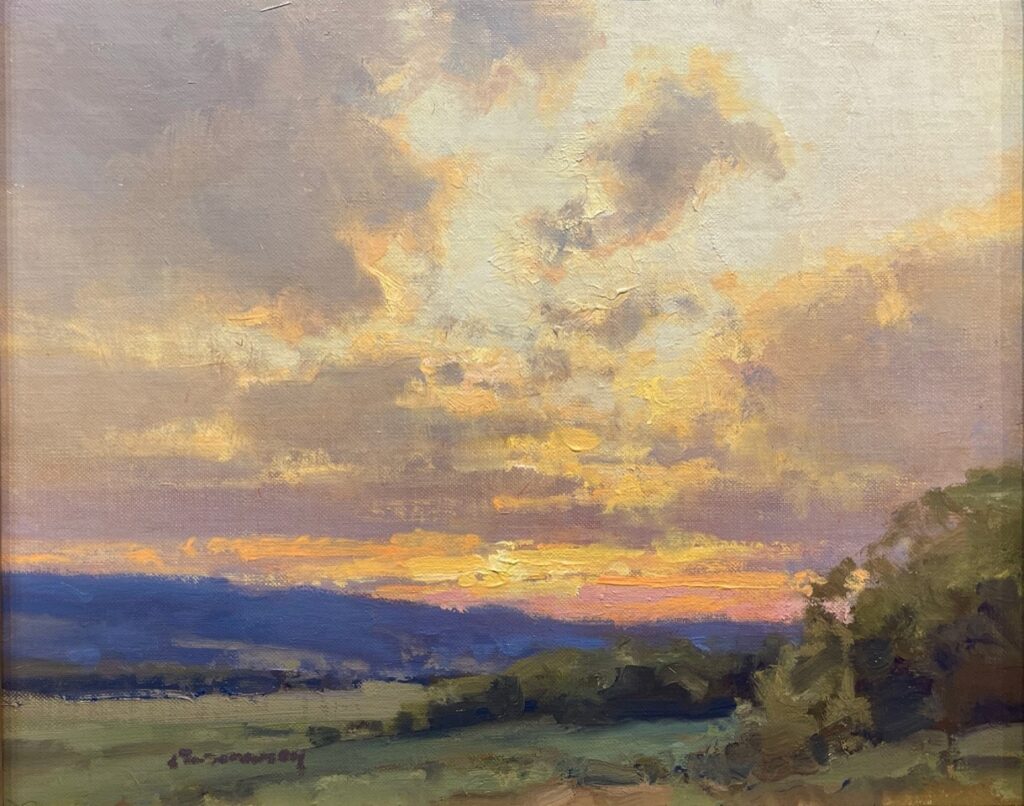 After nearly three decades at the easel, Christensen is recognized around the globe, as evidenced by his invitation to show in Russia’s Ilya Repin St. Petersburg State Academic Institute for Painting, Sculpture, and Architecture. His energy flows through his work, paintings that, in turn, move us, opening our eyes to the beauty of places as varied as the California coast at twilight, and the storied English countryside. They are luscious yet economical landscapes that beg to be explored.