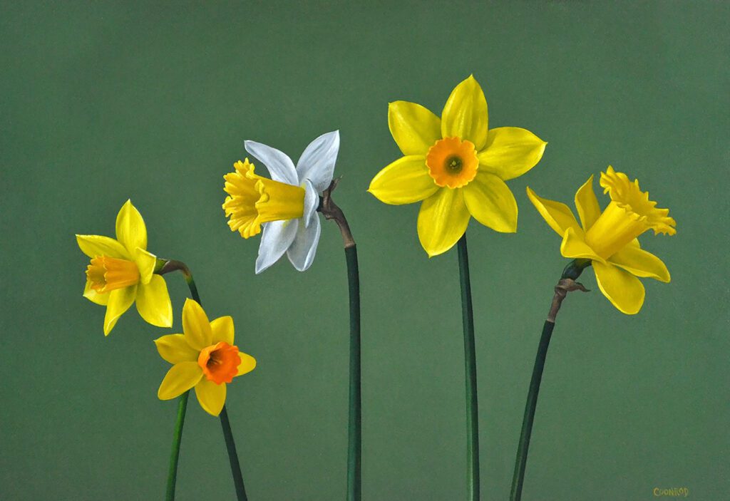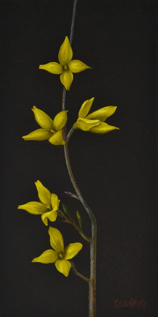Born in Danvers, Massachusetts in 1966, Trish Coonrod grew up with her 9 siblings, she has always loved to paint and draw, knowing from a young age that she would be an artist. Trish majored in painting at Washington University in St. Louis and later at The New York Academy of Art, where she graduated with honors in 1995. Shortly after graduating the Academy, Trish took a job in the studio of Jeff Koons where she worked as a lead painter from 1996 until 2003. In 2006, she moved to Ithaca, New York with her husband and 2 children, where she currently lives and works.